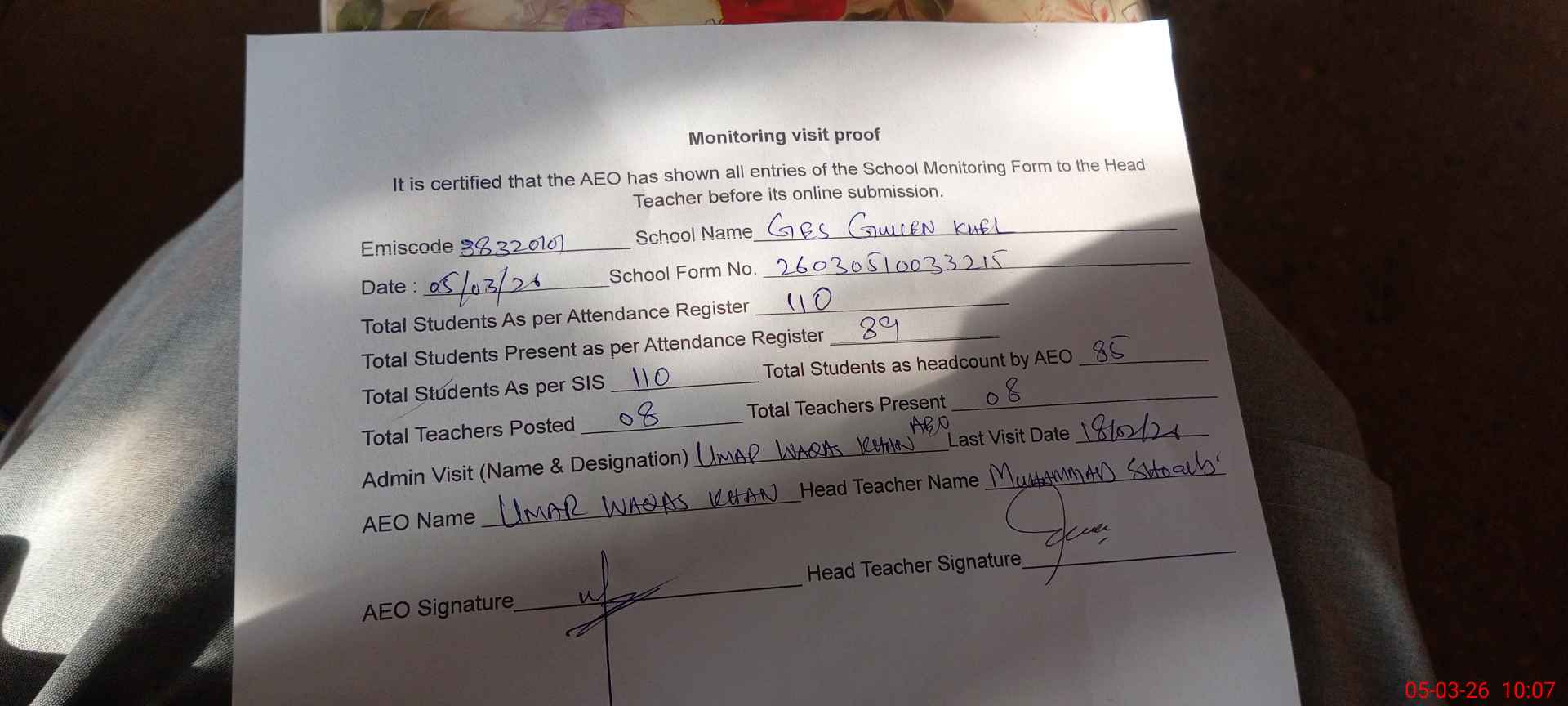 | EMIS Code: 38320101 | Name of School: GES GULLAN KHEL | |||