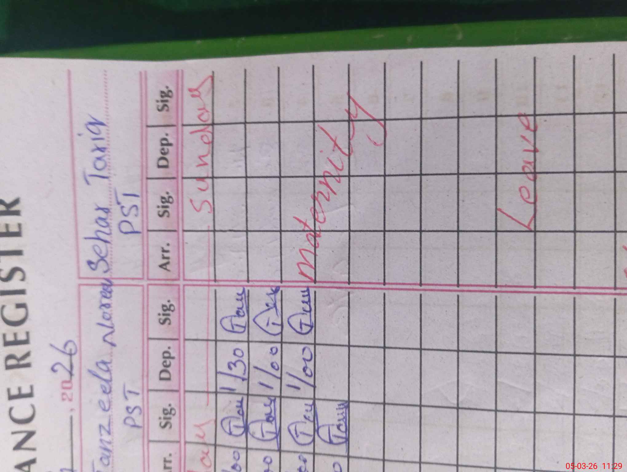 | Leave | Duty | Absent | Maternity | Medical | Ex- Pak |
