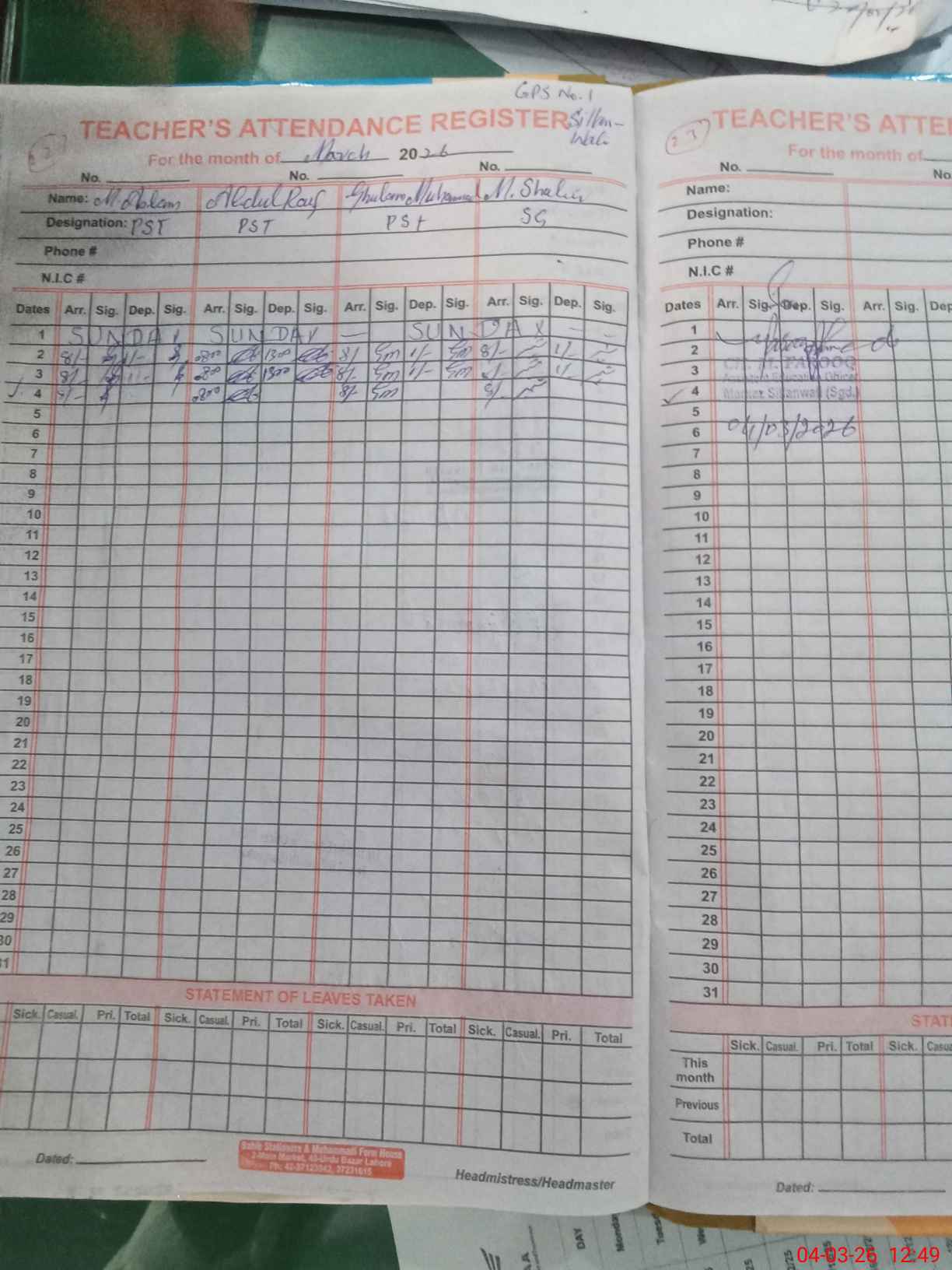 | EMIS Code: 38440102 | Name of School: GPS NO.1 TMA ROAD SILLANWALI | |||