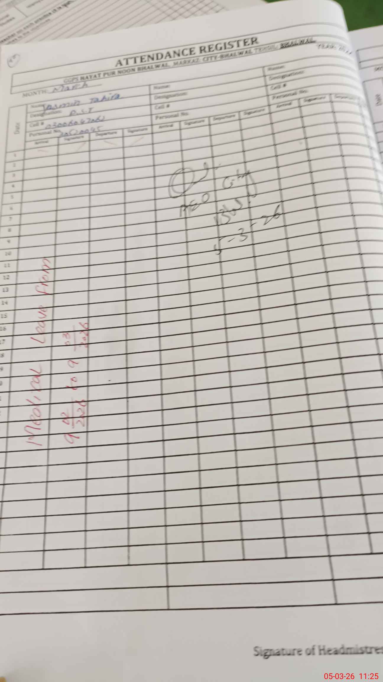 | Name: TA**** SU**** Designation: (School Headmaster's/Headmistress's) PST Phone/Cell Number: 03**** |