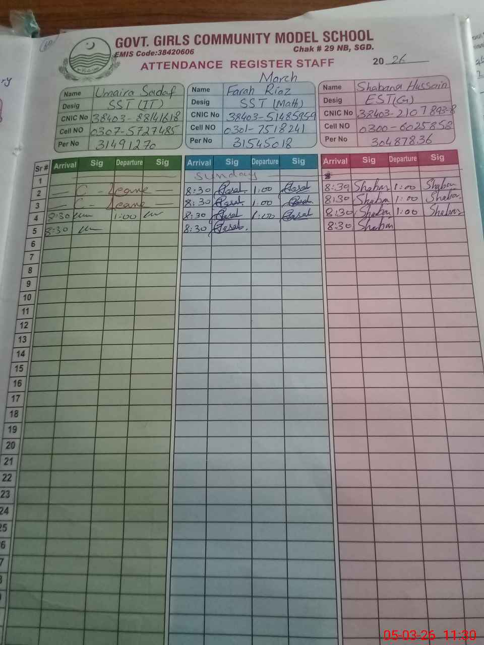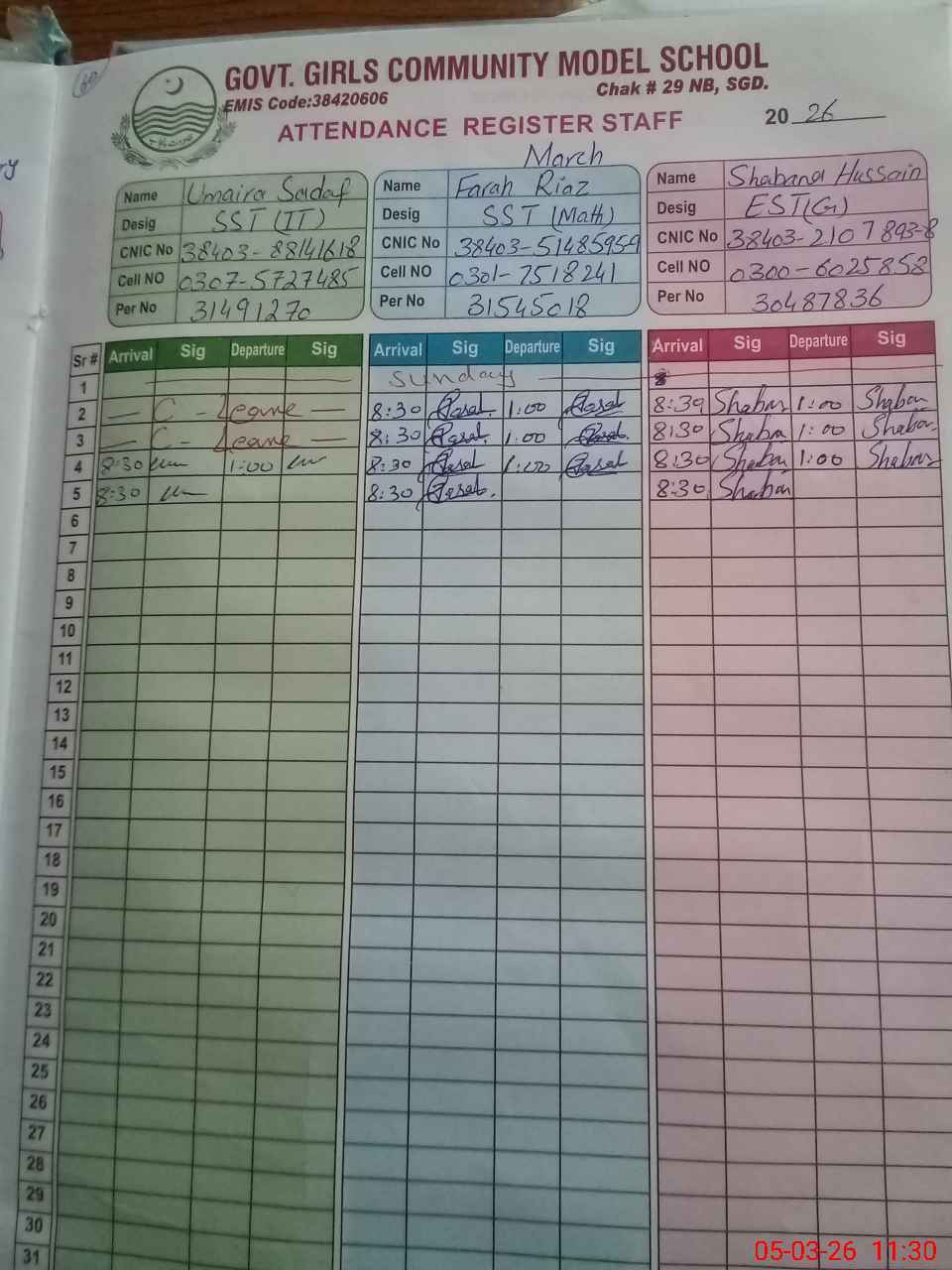 | Name: UM**** SA**** Designation: (School Headmaster's/Headmistress's) S.S.T. IT Phone/Cell Number: 03**** |