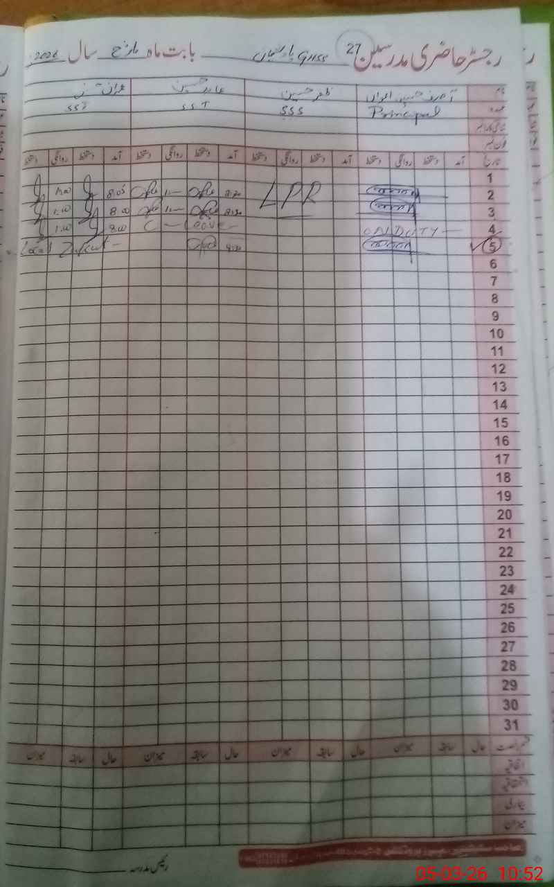 | Name: As**** Hu**** Aw**** Designation: (School Headmaster's/Headmistress's) Principal Phone/Cell Number: 03**** |