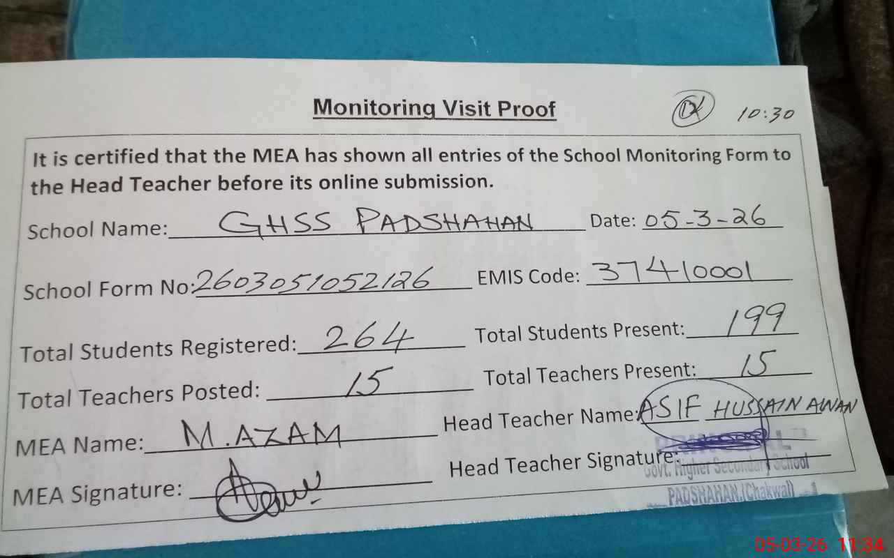 | EMIS Code: 37410001 | Name of School: GHSS PADSHAHAN | |||