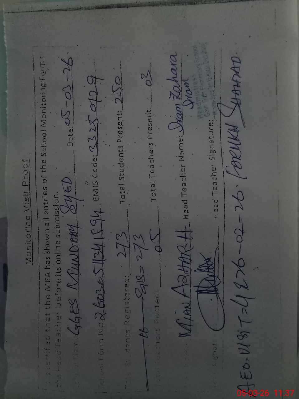 | EMIS Code: 33250129 | Name of School: GGES MUNDAY SYED | |||