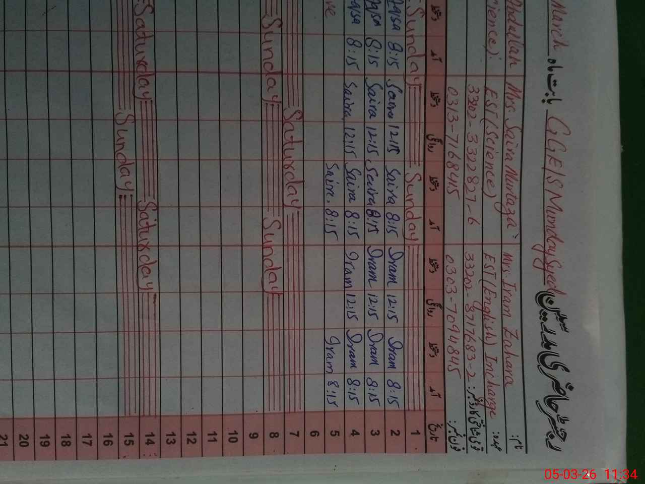 | Name: Su**** Wa**** Designation: (School Headmaster's/Headmistress's) SST Phone/Cell Number: 03**** |
