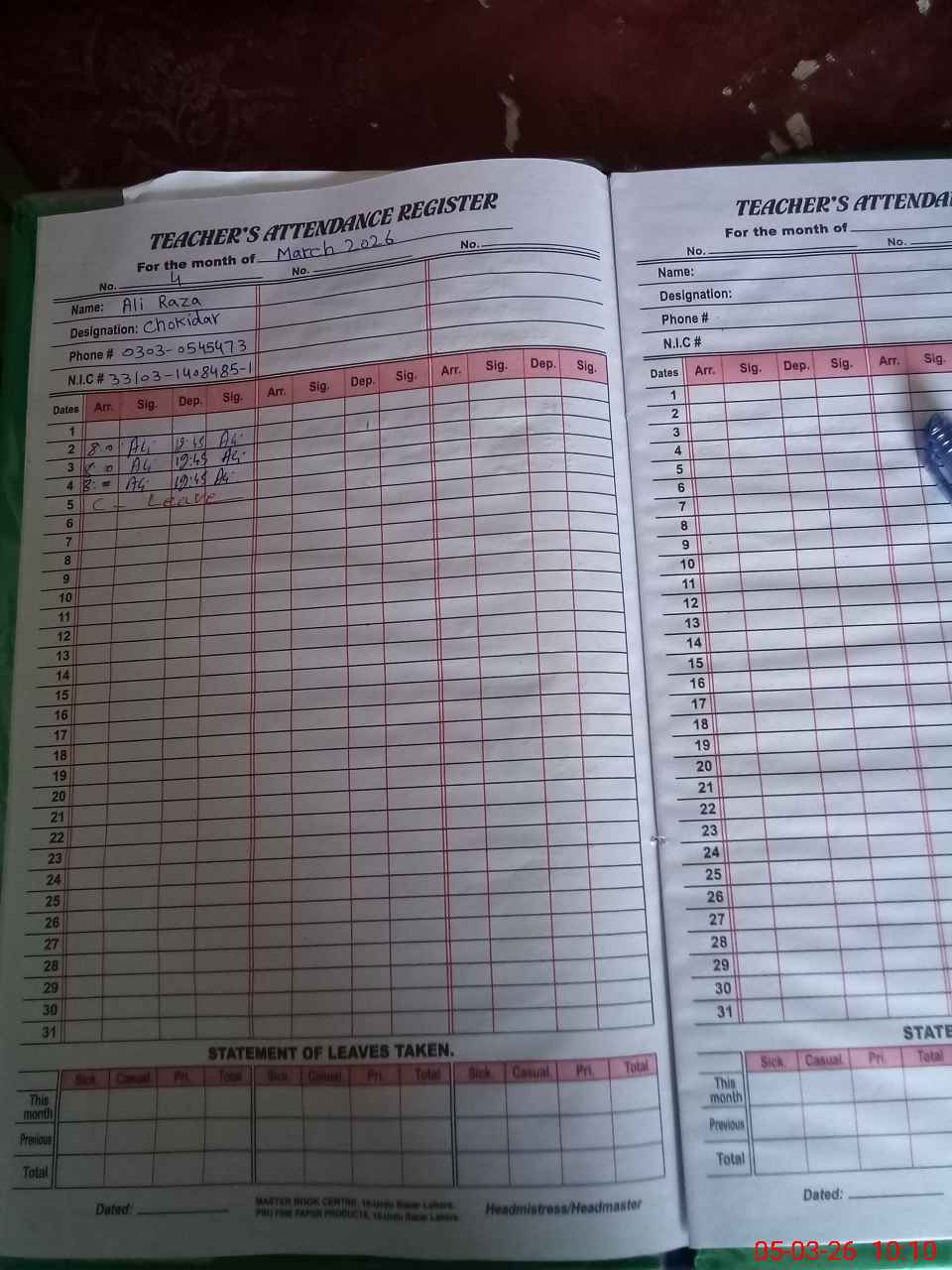 | Name: AS**** JA**** Designation: (School Headmaster's/Headmistress's) PST Phone/Cell Number: 03**** |