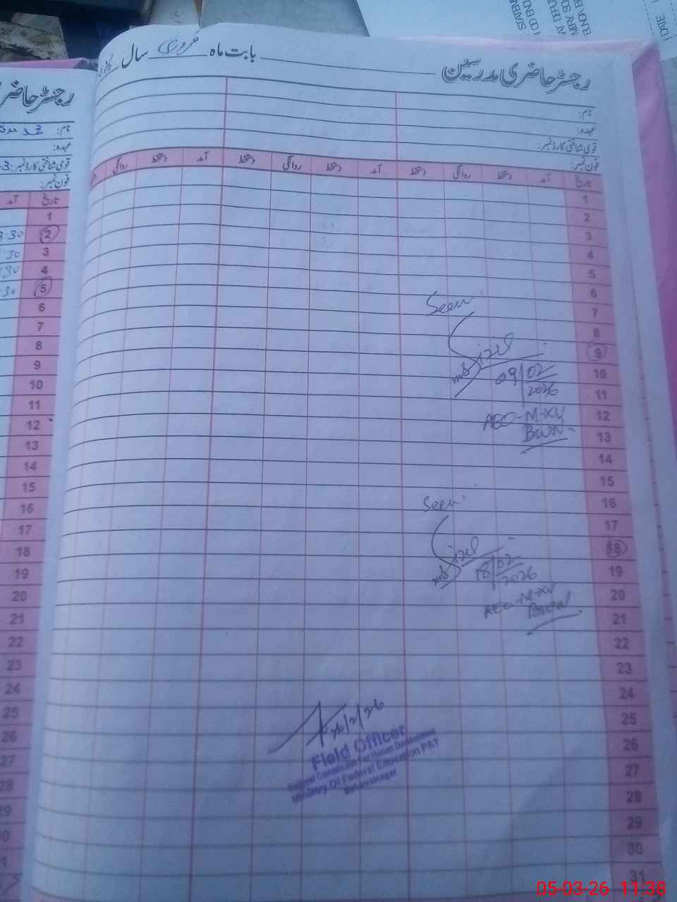 | CNIC | Full Name | Designation | R/C | Absence During Last Calender Month |