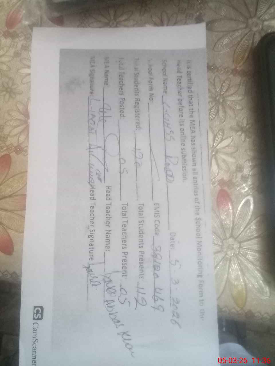 | Name: SH**** IQ**** Designation: (School Headmaster's/Headmistress's) PRINCIPAL Phone/Cell Number: 03**** |