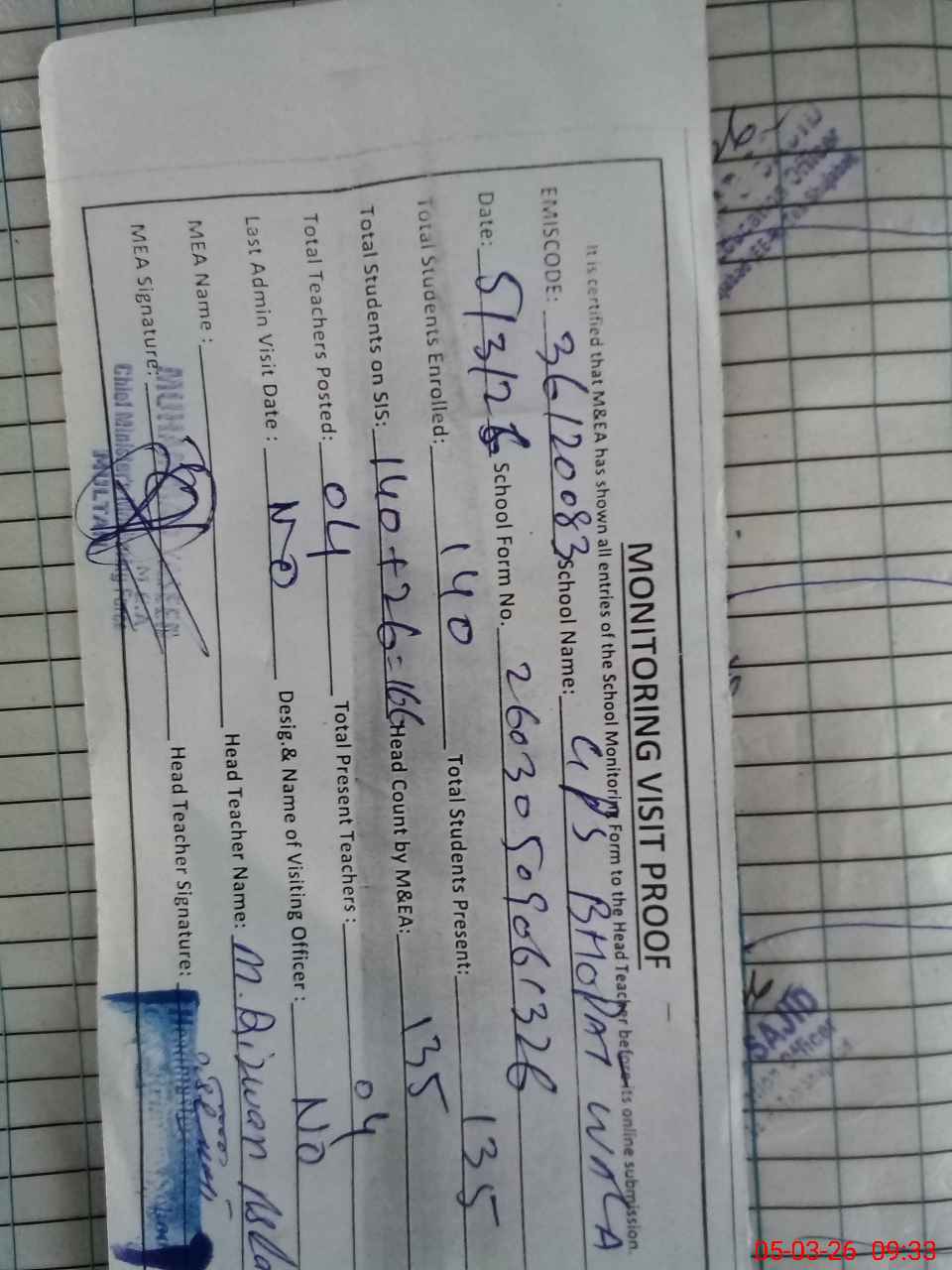 | EMIS Code: 36120083 | Name of School: GPS BHOPAT WALA P/O AGHARKHANI SHUJABAD | |||