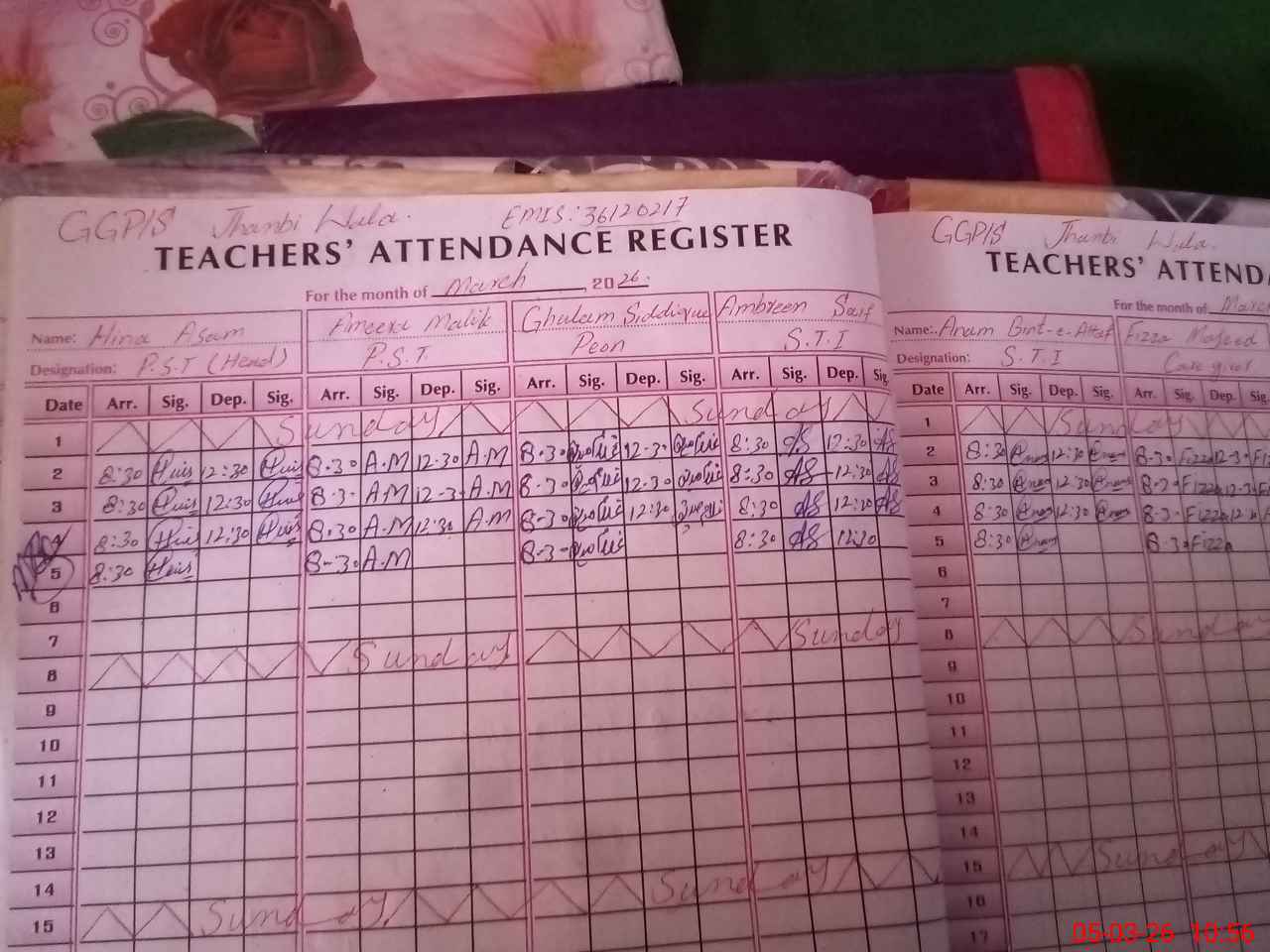 | Name: Hi**** As**** Designation: (School Headmaster's/Headmistress's) PST Phone/Cell Number: 03**** |