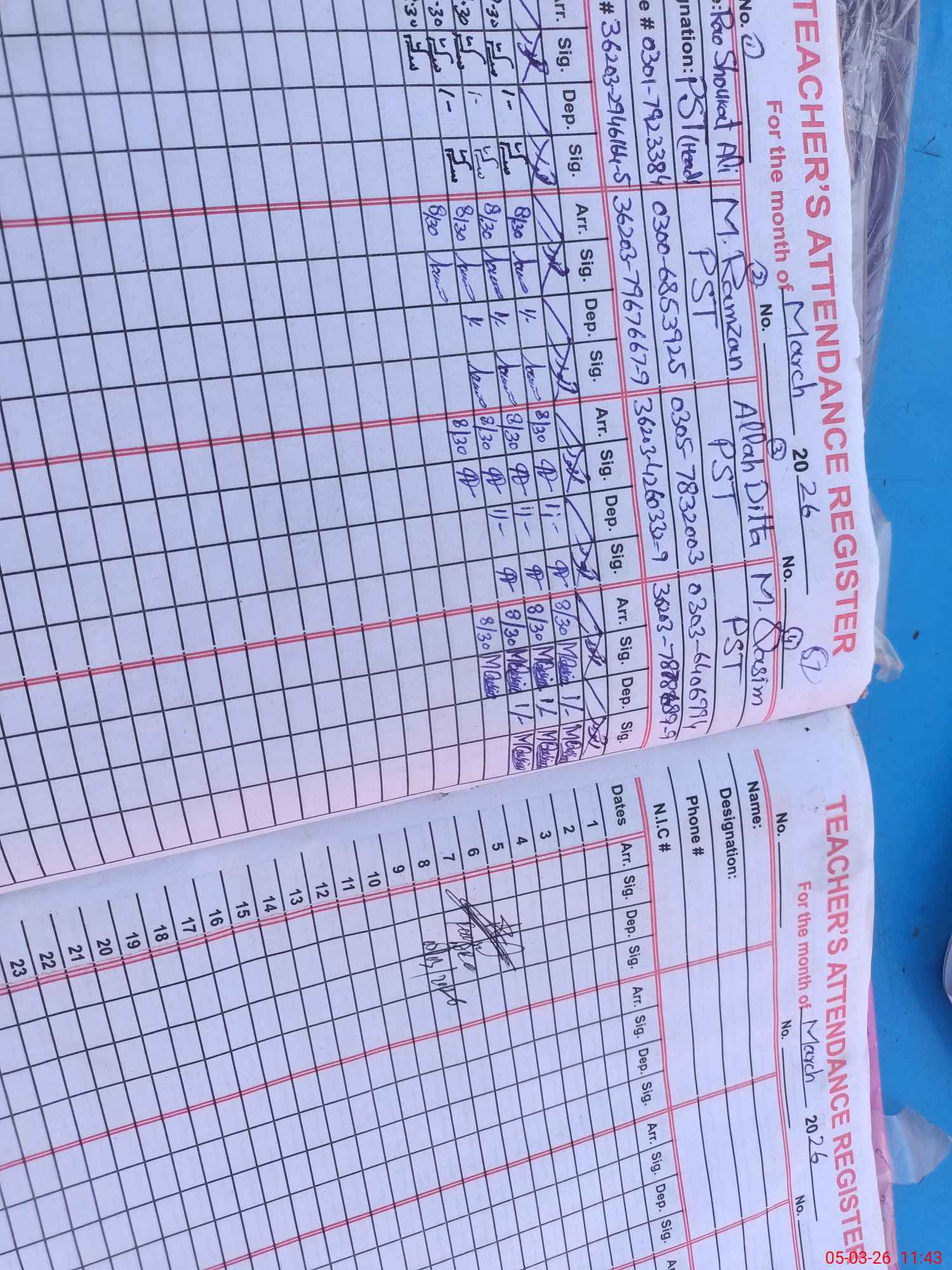 | Name: RA**** SH**** AL**** Designation: (School Headmaster's/Headmistress's) PTC/JV Phone/Cell Number: 03**** |