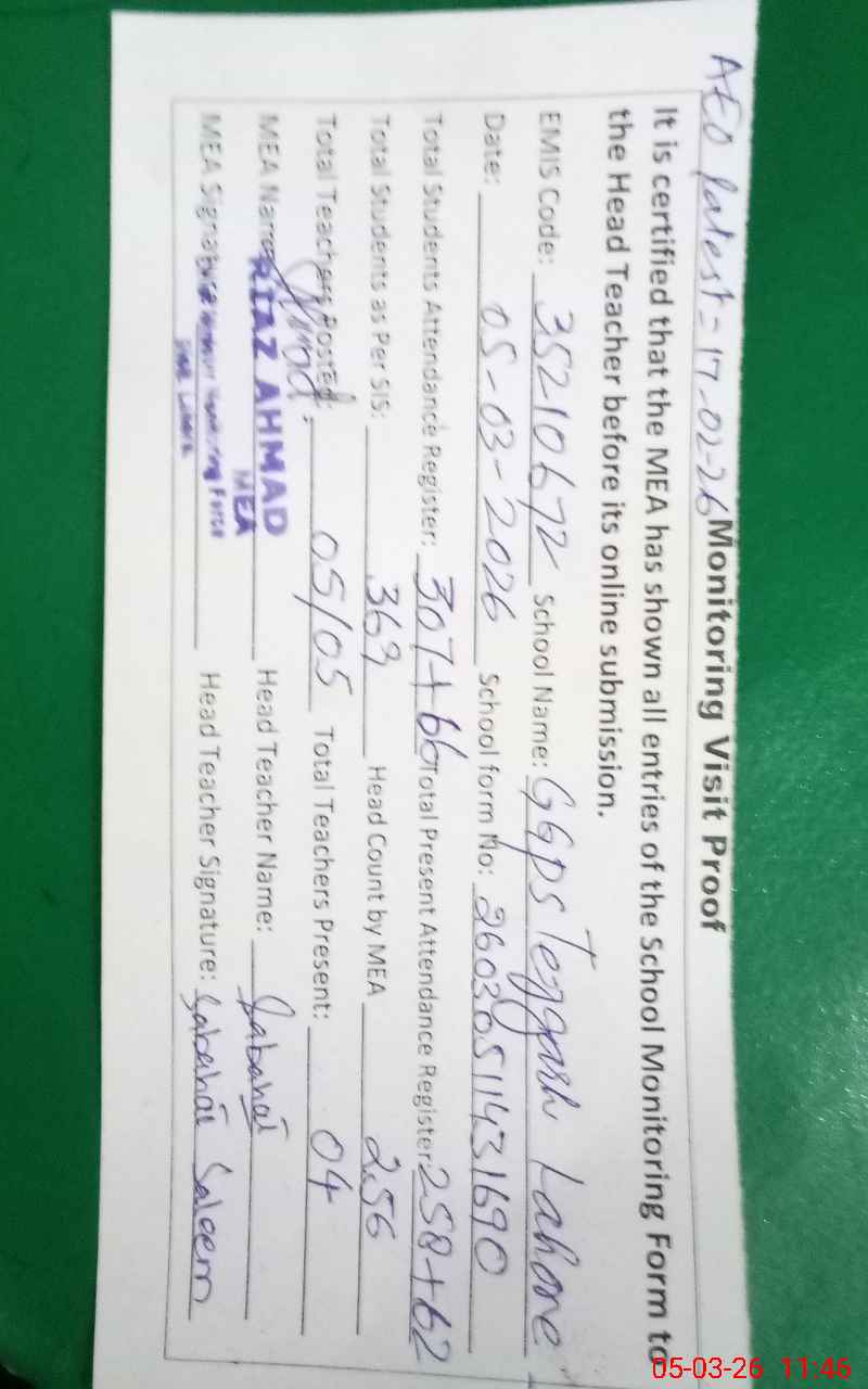 | EMIS Code: 35210672 | Name of School: GGPS TEJ GARH | |||