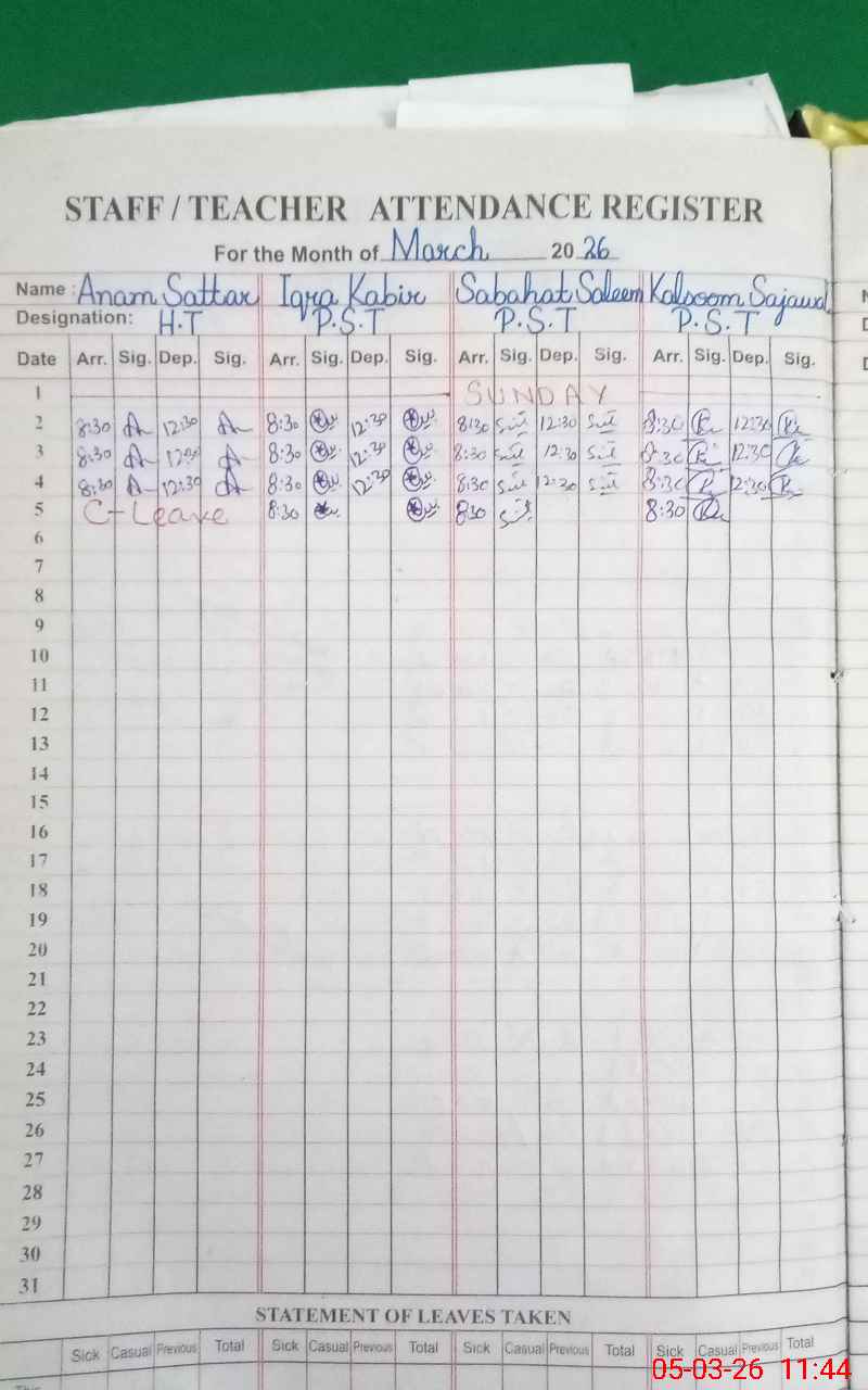 | Attendance Register | Head Teacher | MEA with School | Visit Proof |