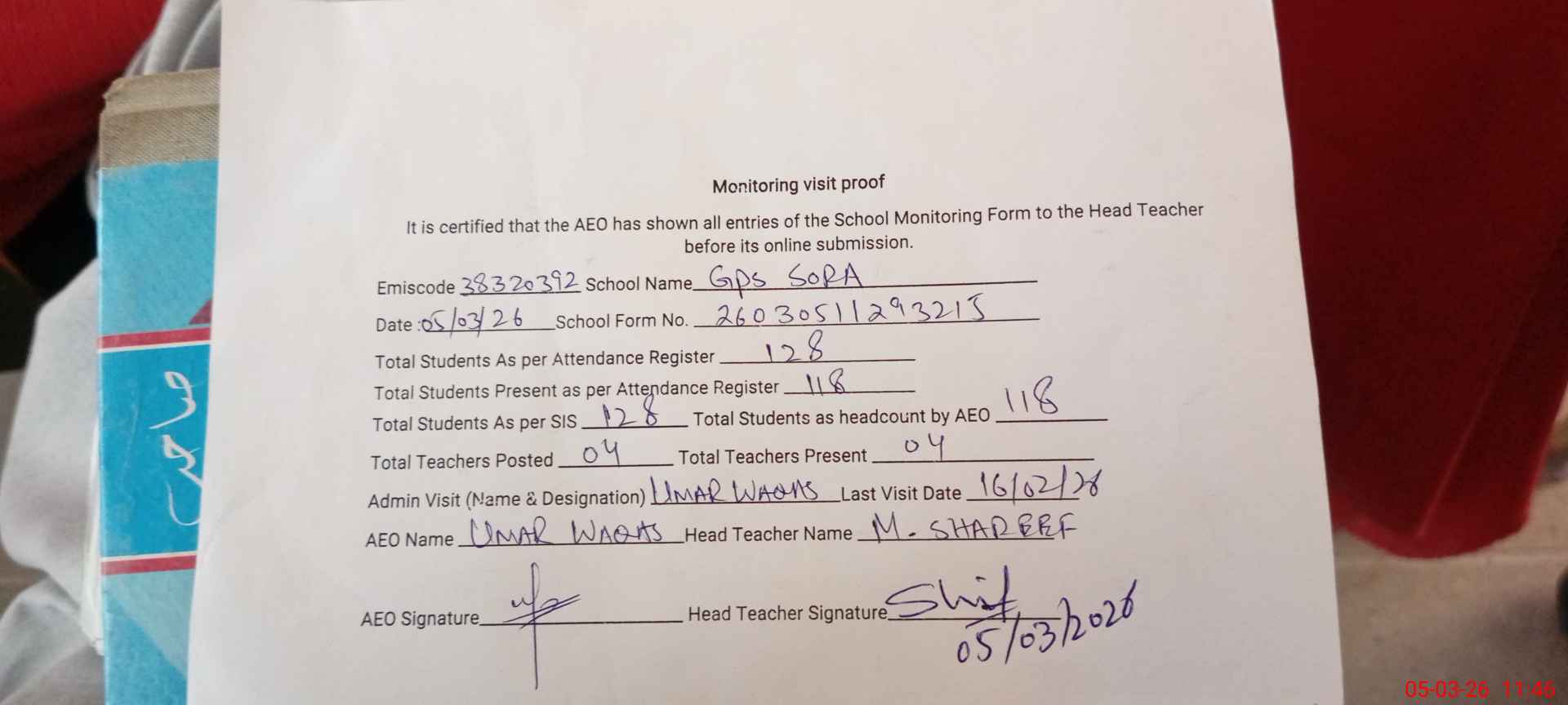 | EMIS Code: 38320392 | Name of School: GPS SORA | |||