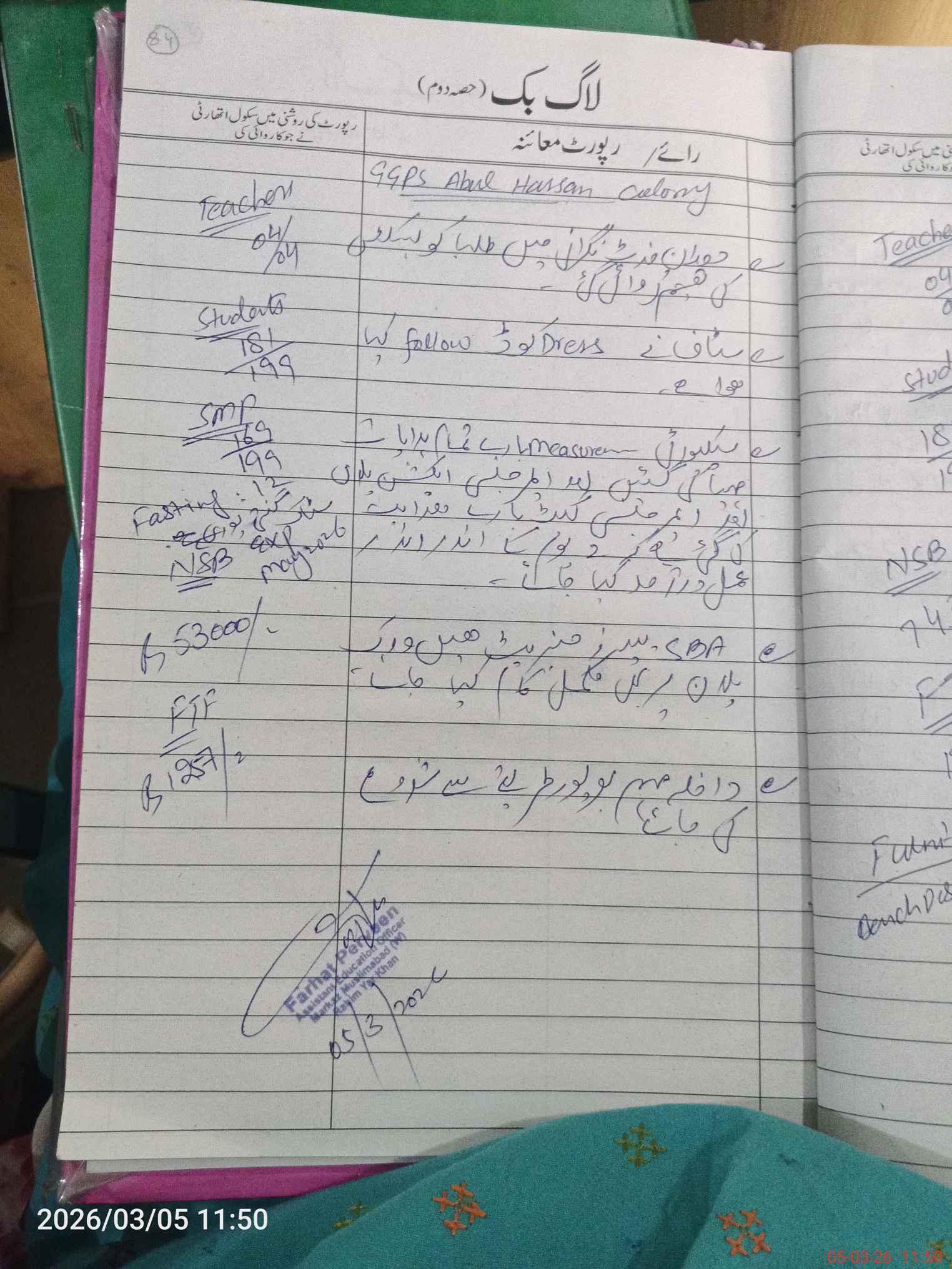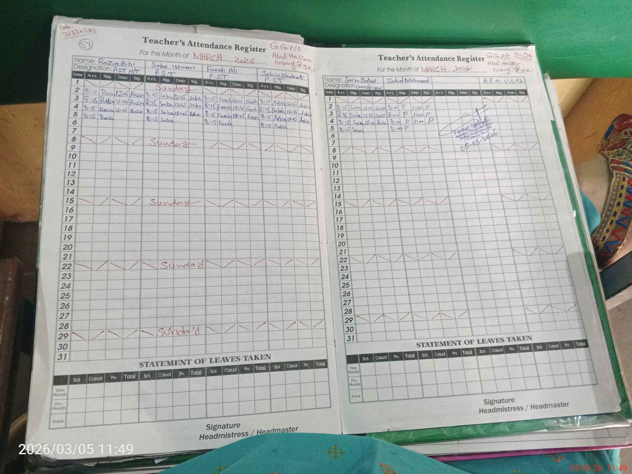 | EMIS Code: 31330521 | Name of School: GGPS ABUL HASSAN COLONY | |||