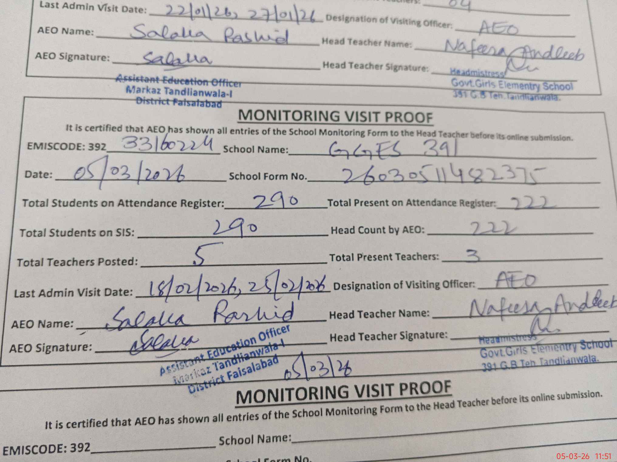 | EMIS Code: 33160224 | Name of School: GGES CHAK 391 GB TANDLIANWALA | |||