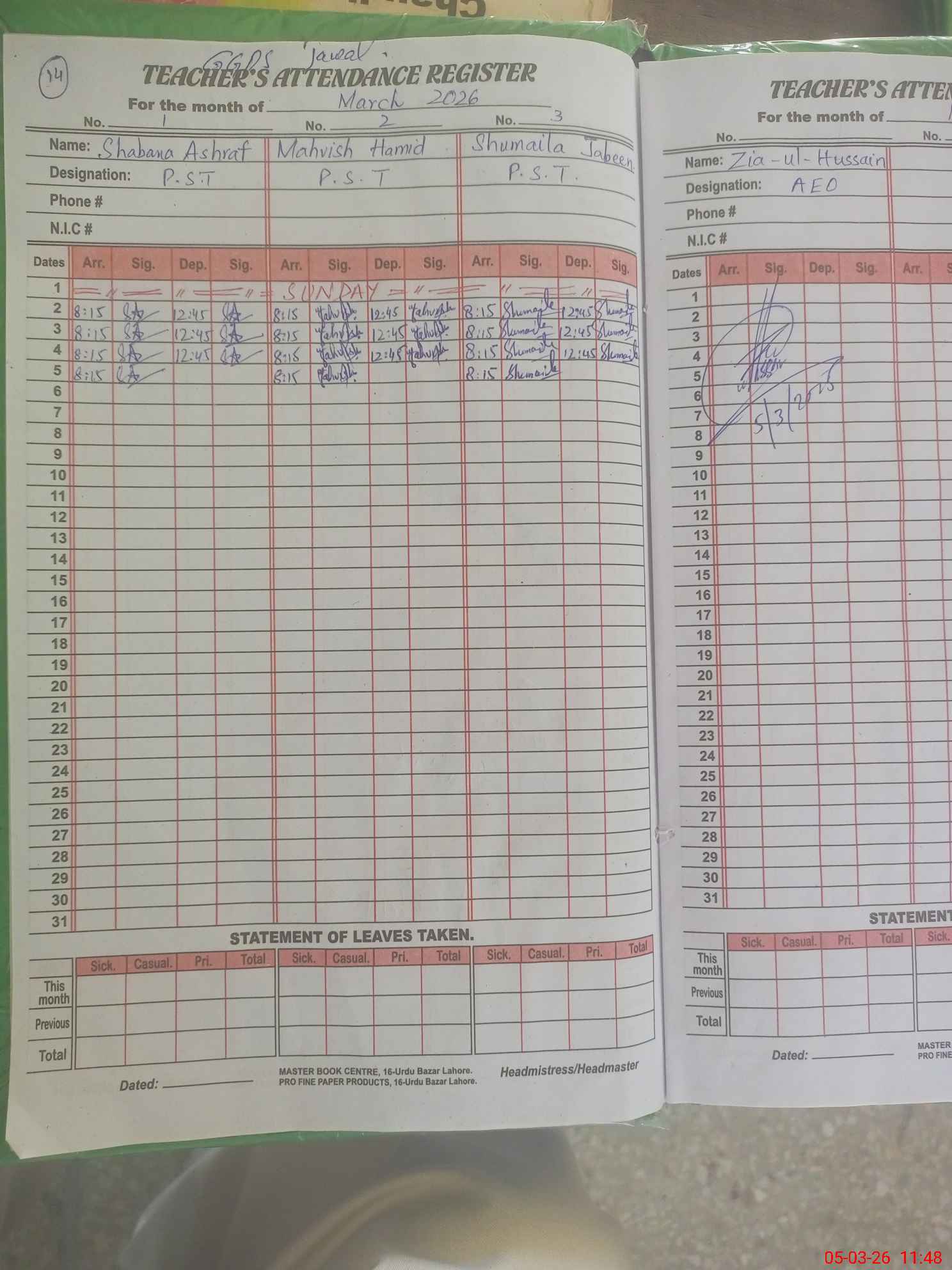 | Name: SH**** AS**** Designation: (School Headmaster's/Headmistress's) PTC Phone/Cell Number: 03**** |