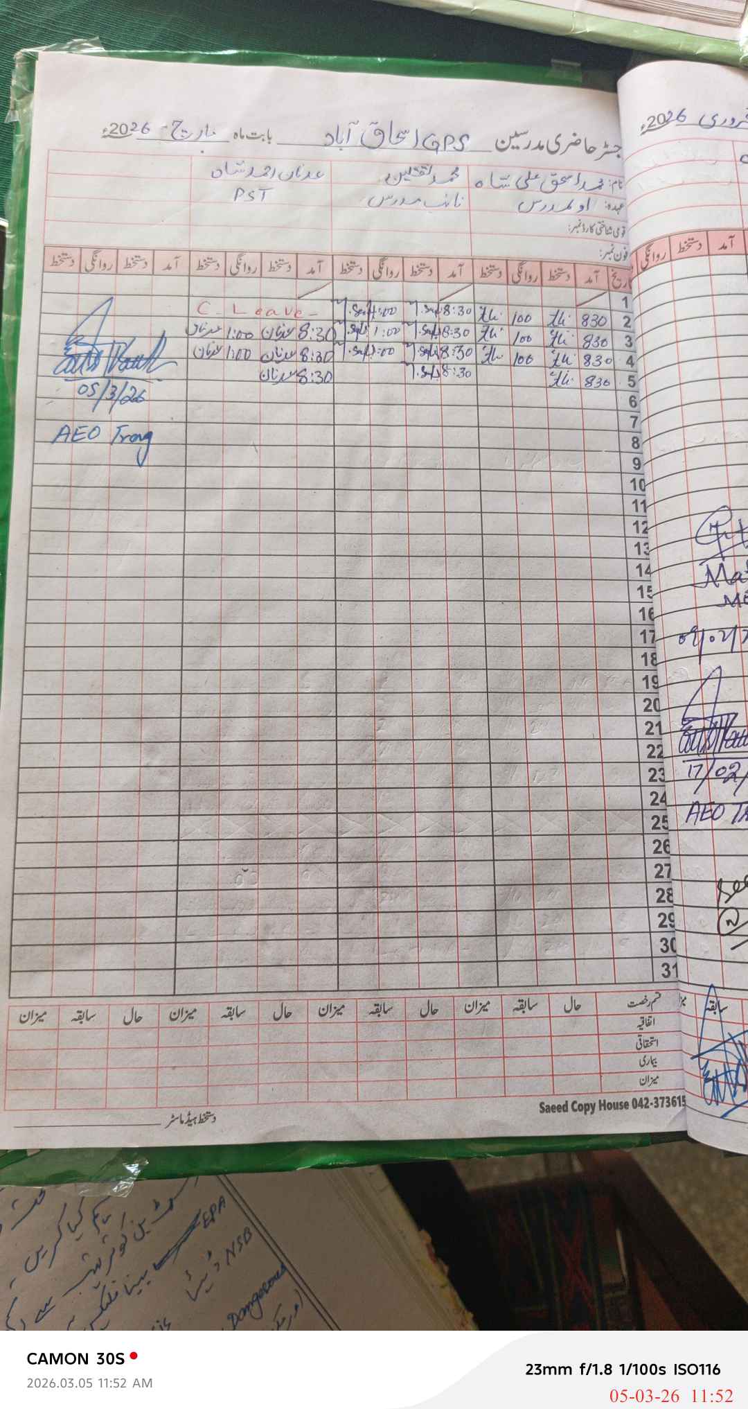 | Name: MIs**** Al**** Sh**** Designation: (School Headmaster's/Headmistress's) PST Phone/Cell Number: 03**** |