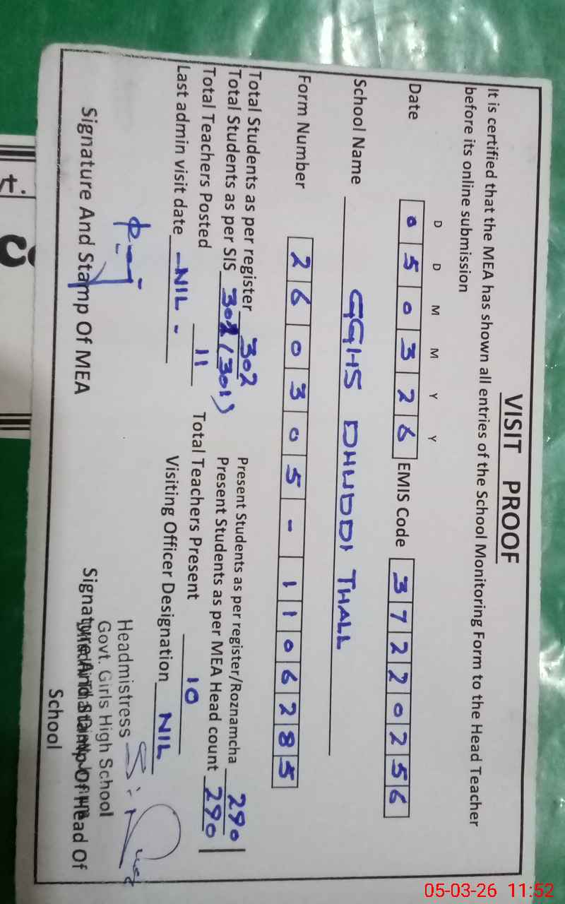 | EMIS Code: 37220256 | Name of School: GGHS DHUDHY THALL | |||