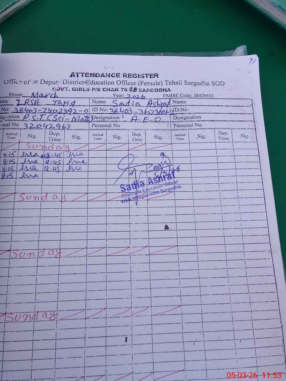 | Name: SA**** KA**** Designation: (School Headmaster's/Headmistress's) PST Phone/Cell Number: 03**** |