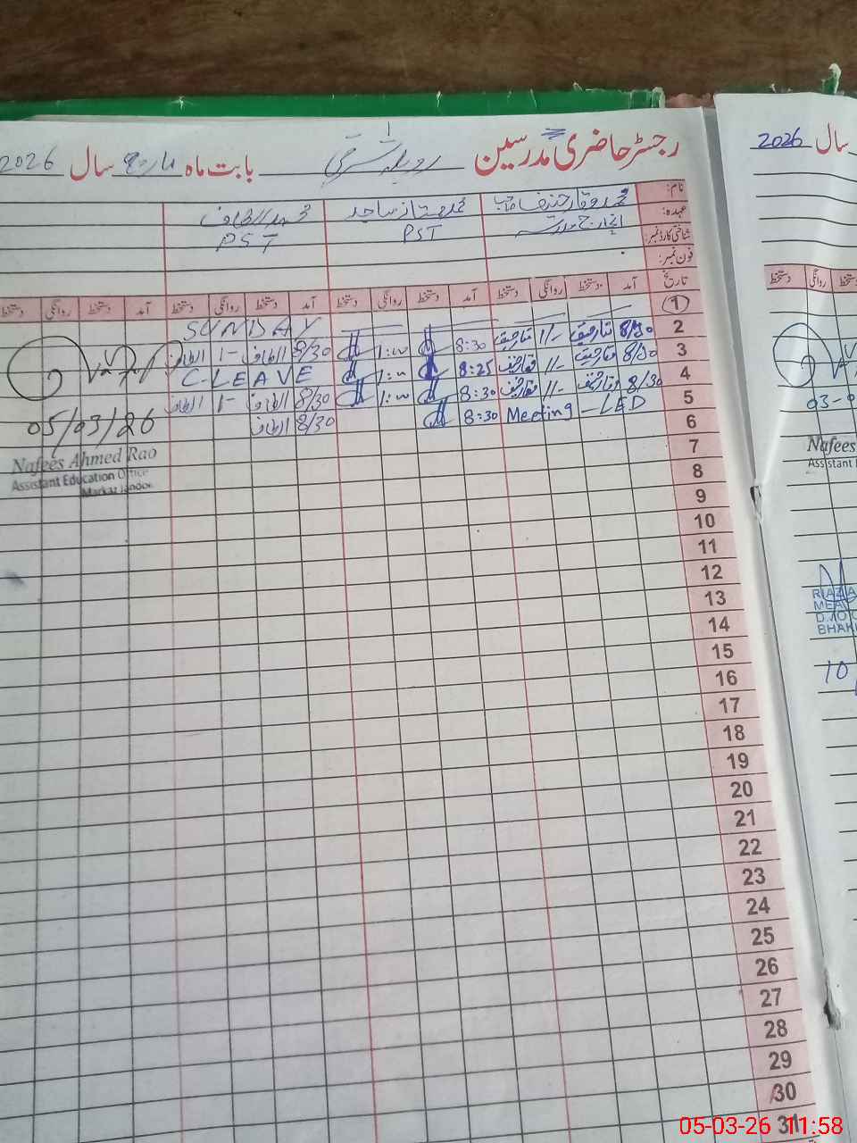 | Name: Mu**** Wa**** Ha**** Designation: (School Headmaster's/Headmistress's) PTC/JV Phone/Cell Number: 03**** |
