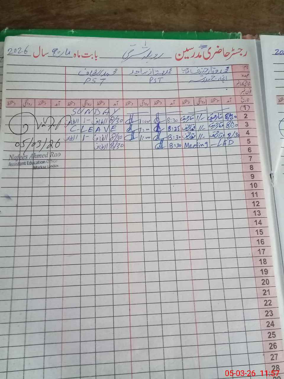 | CNIC | Full Name | Designation | R/C | Absence During Last Calender Month |