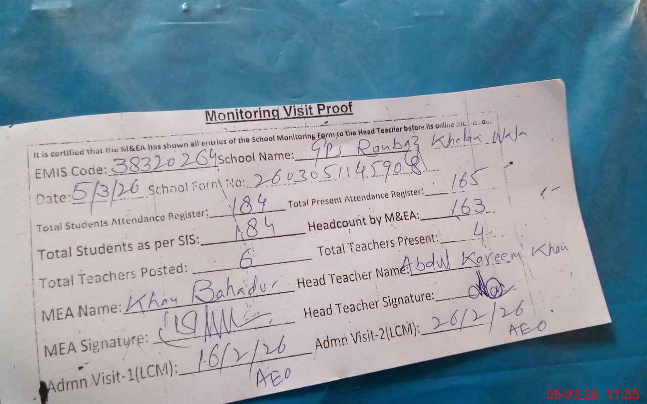 | EMIS Code: 38320264 | Name of School: GPS RANBAZ KHELAN WALA | |||