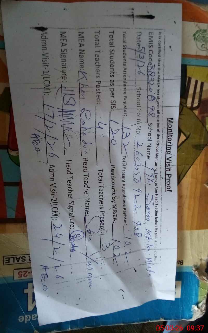 | Attendance Register | Head Teacher | MEA with School | Visit Proof |