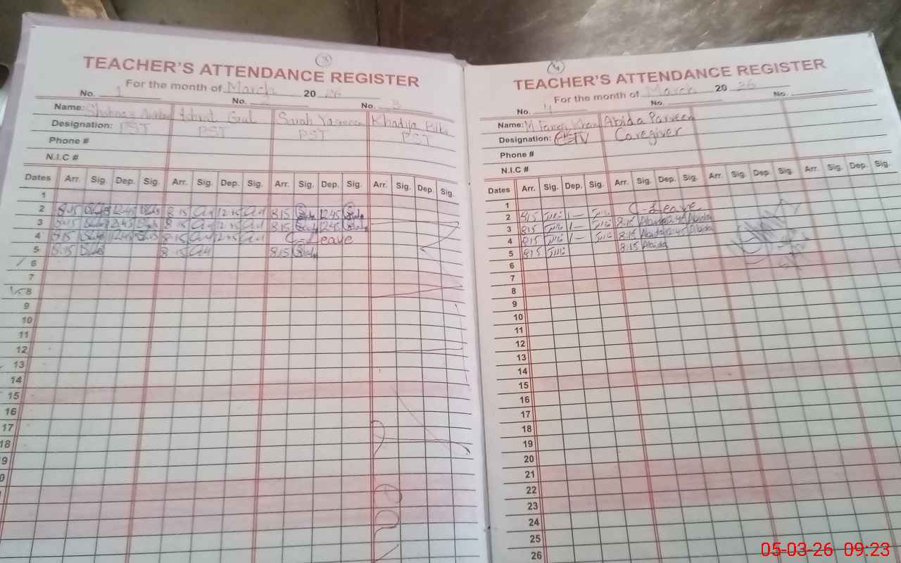 | 38**** | Kh**** BiBi | PST Science/Maths | Regular | 0 | 0 | 0 | 0 | 0 | 0 | 0 | 0 | 0 | Maternity |