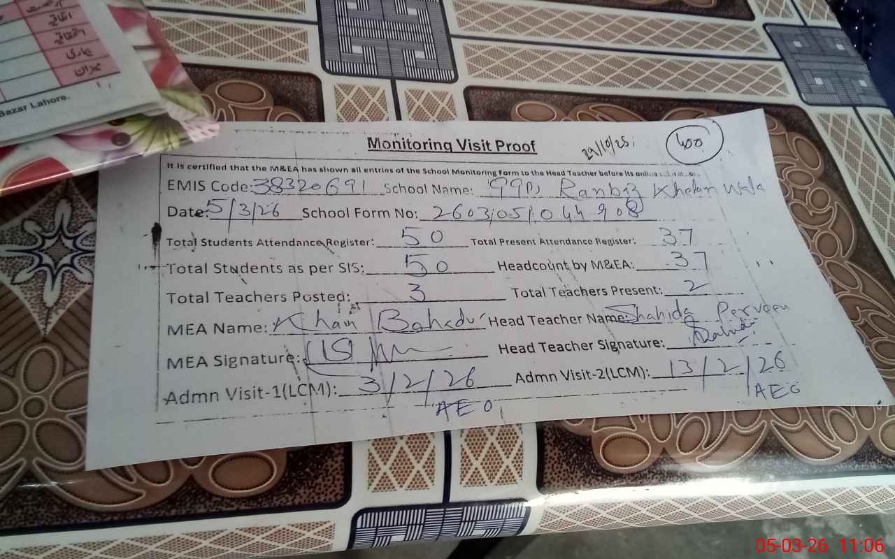 | EMIS Code: 38320691 | Name of School: GGPS RANBAZ KHELAN WALA | |||