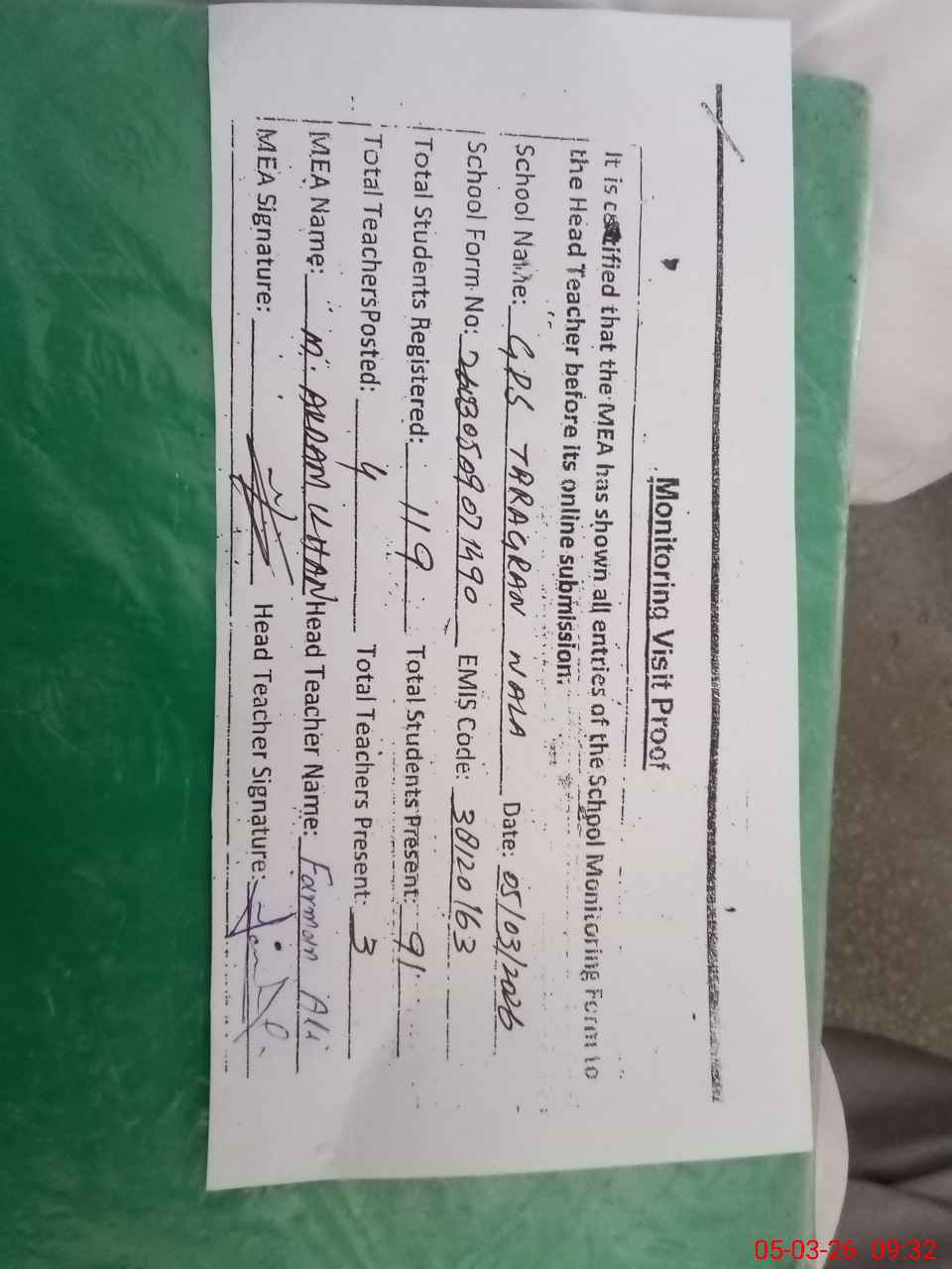 | EMIS Code: 38120163 | Name of School: GPS TARAGRAN WALA | |||