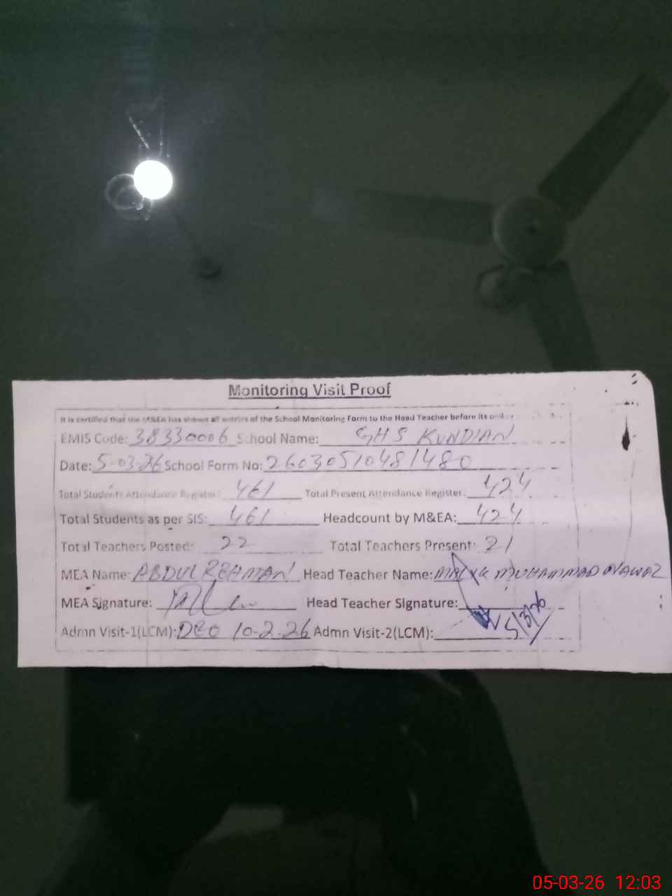 | EMIS Code: 38330006 | Name of School: GHS KUNDIAN | |||