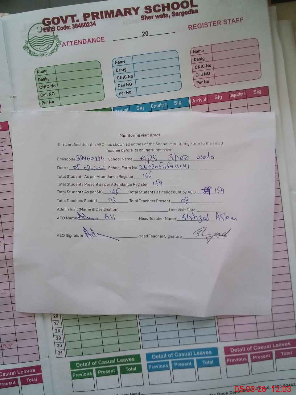 | EMIS Code: 38460234 | Name of School: GPS SHER WALA | |||