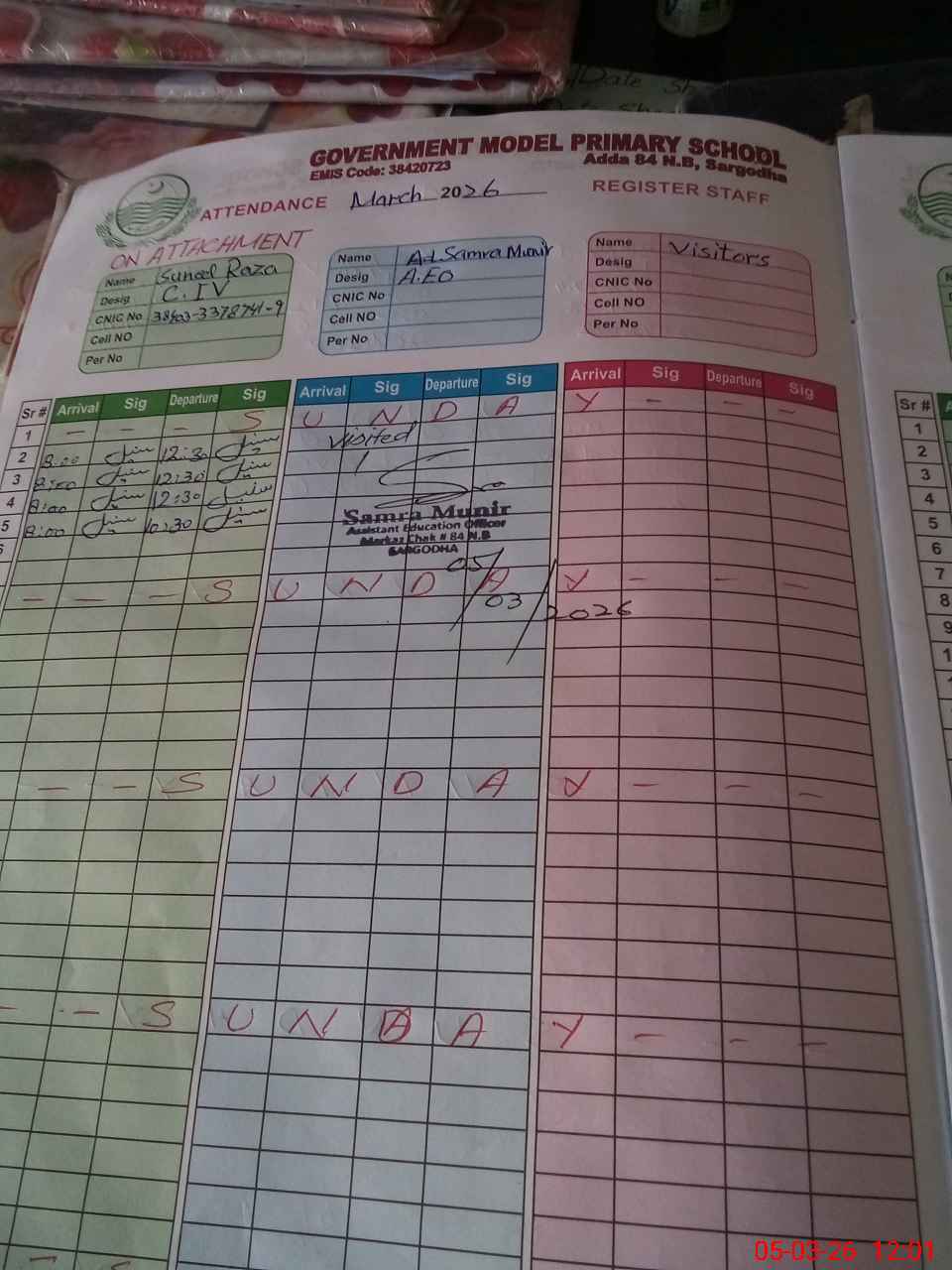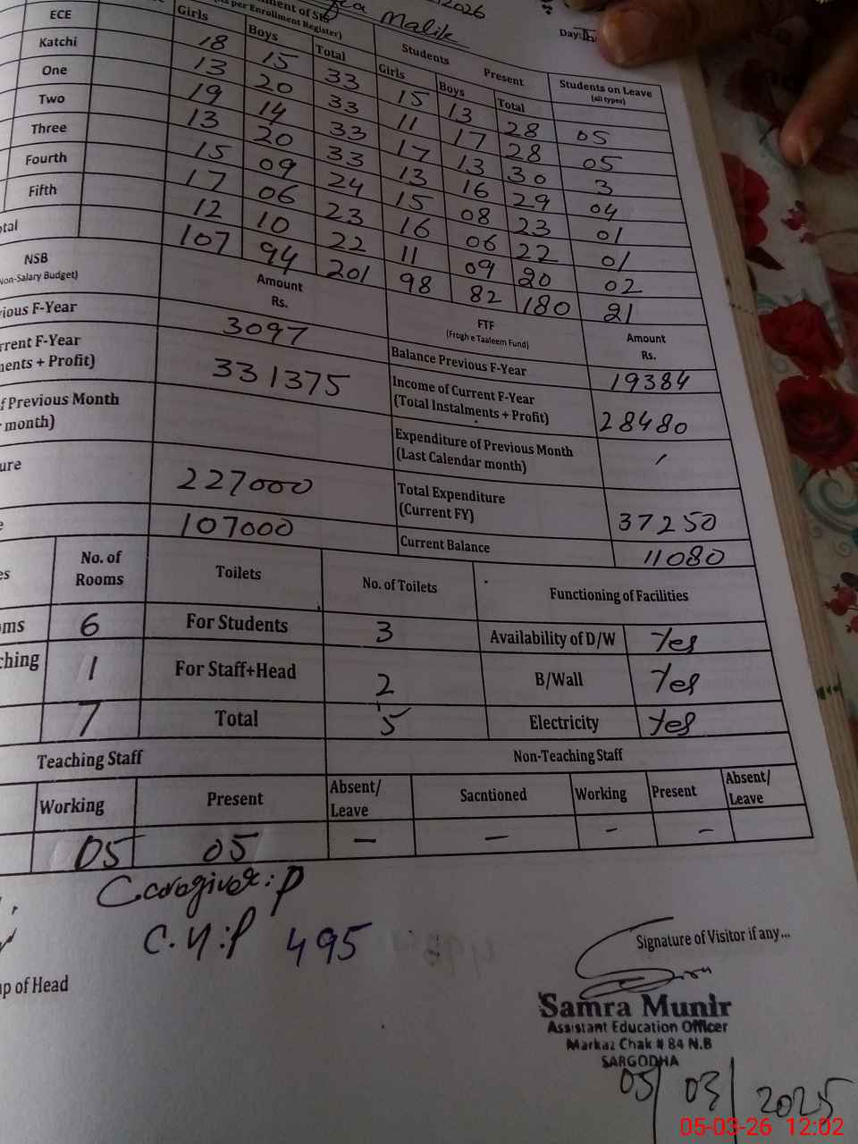 | District: SARGODHA | Tehsil: SARGODHA | Markaz: CHAK 84-NB - FEMALE | Level: Primary | |