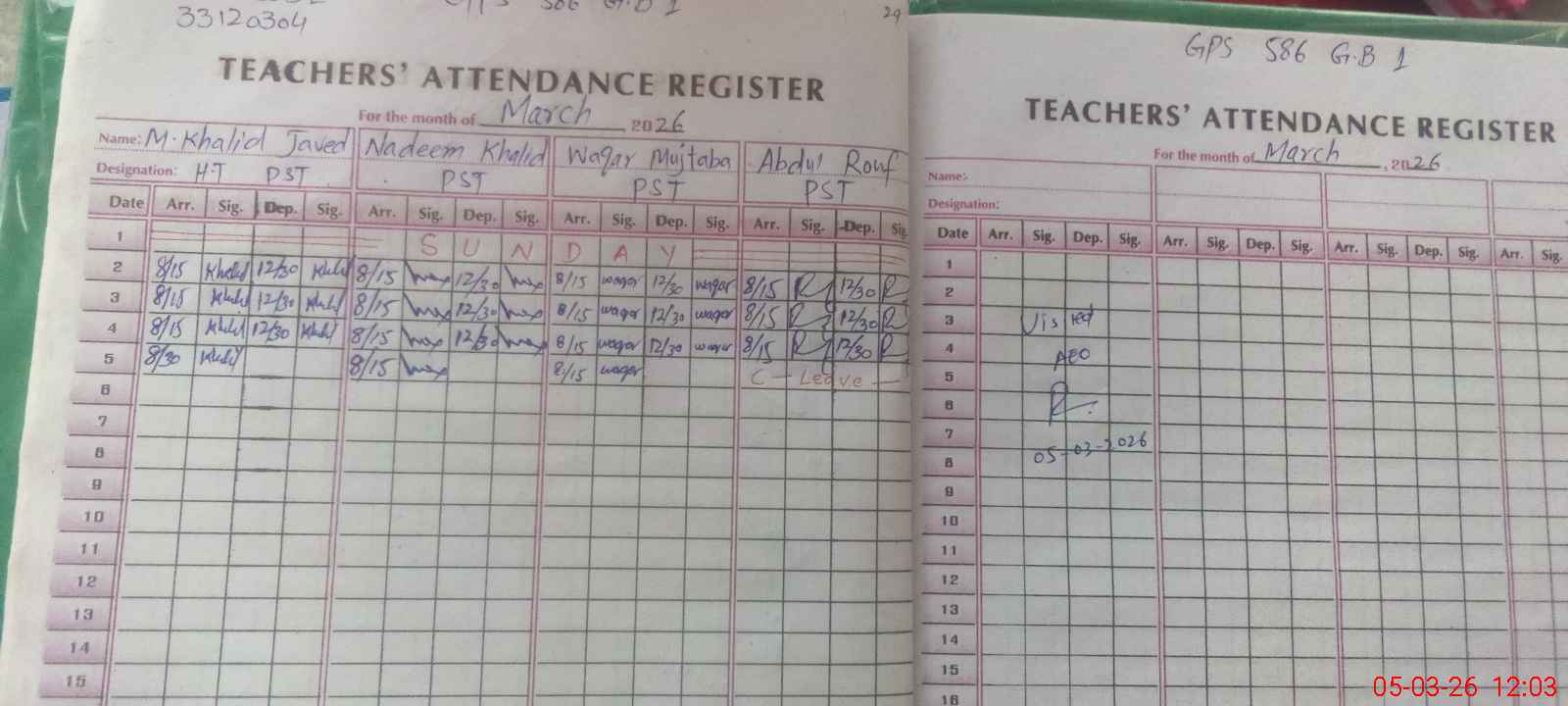 | Name: Kh**** Ja**** Designation: (School Headmaster's/Headmistress's) PST Phone/Cell Number: 03**** |
