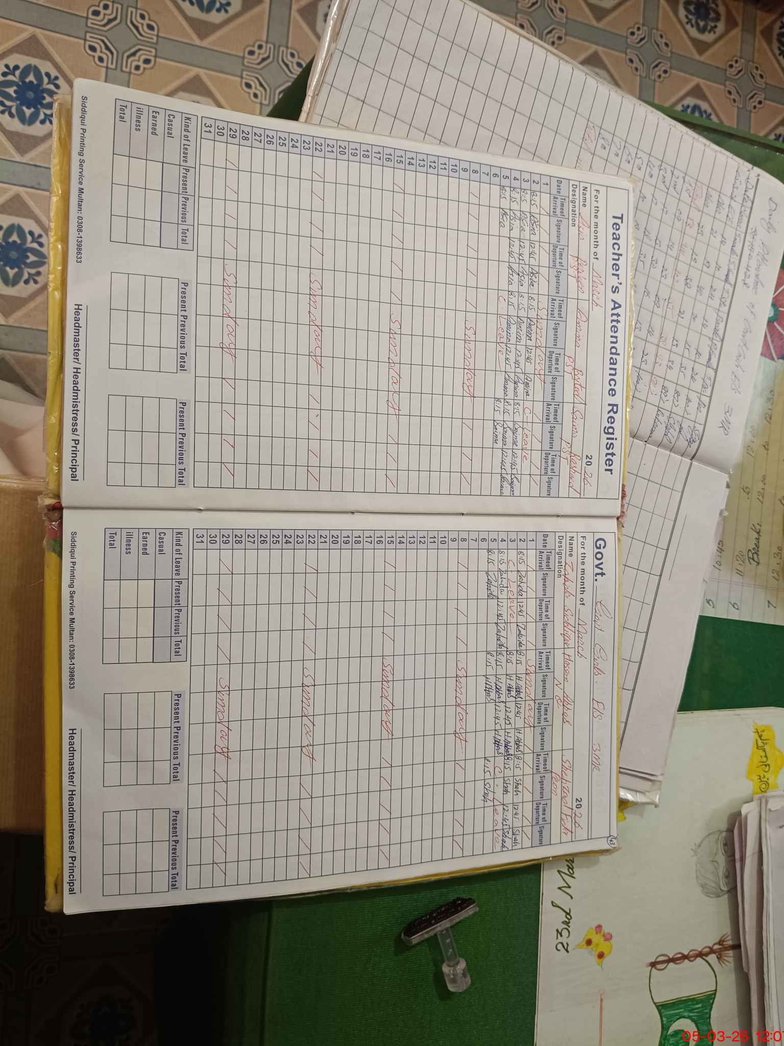 | Attendance Register | Head Teacher | MEA with School | Visit Proof |