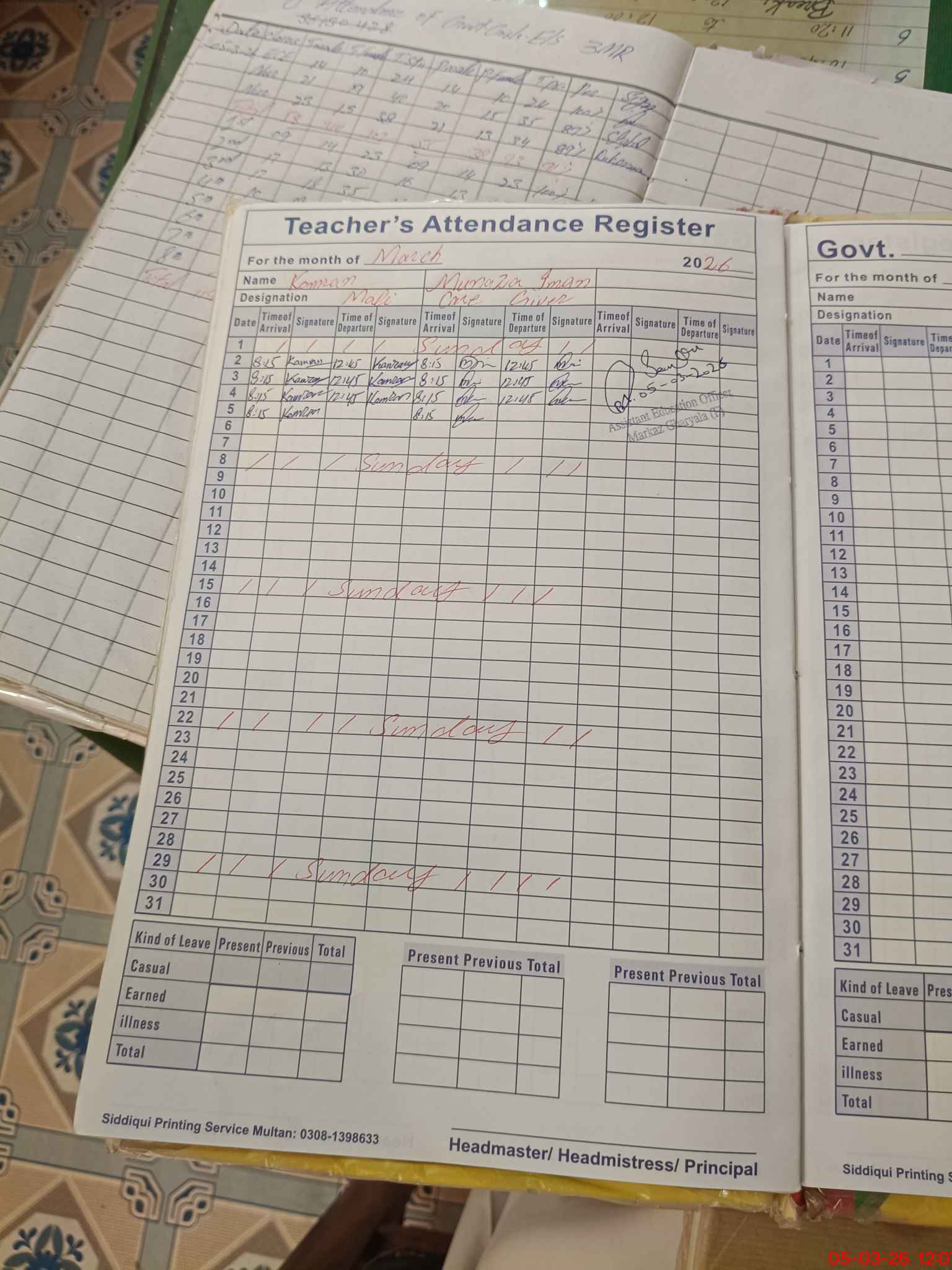 | Name: Sa**** Sh**** Designation: (School Headmaster's/Headmistress's) HEADMISTRESS Phone/Cell Number: 03**** |