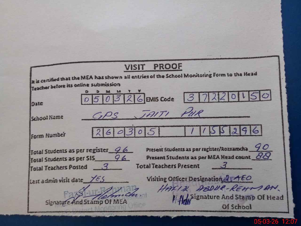 | EMIS Code: 37220150 | Name of School: GPS JATTI PUR | |||