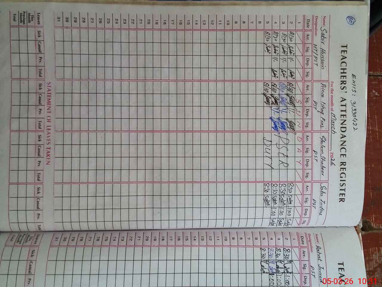 | Leave | Duty | Absent | Maternity | Medical | Ex- Pak |