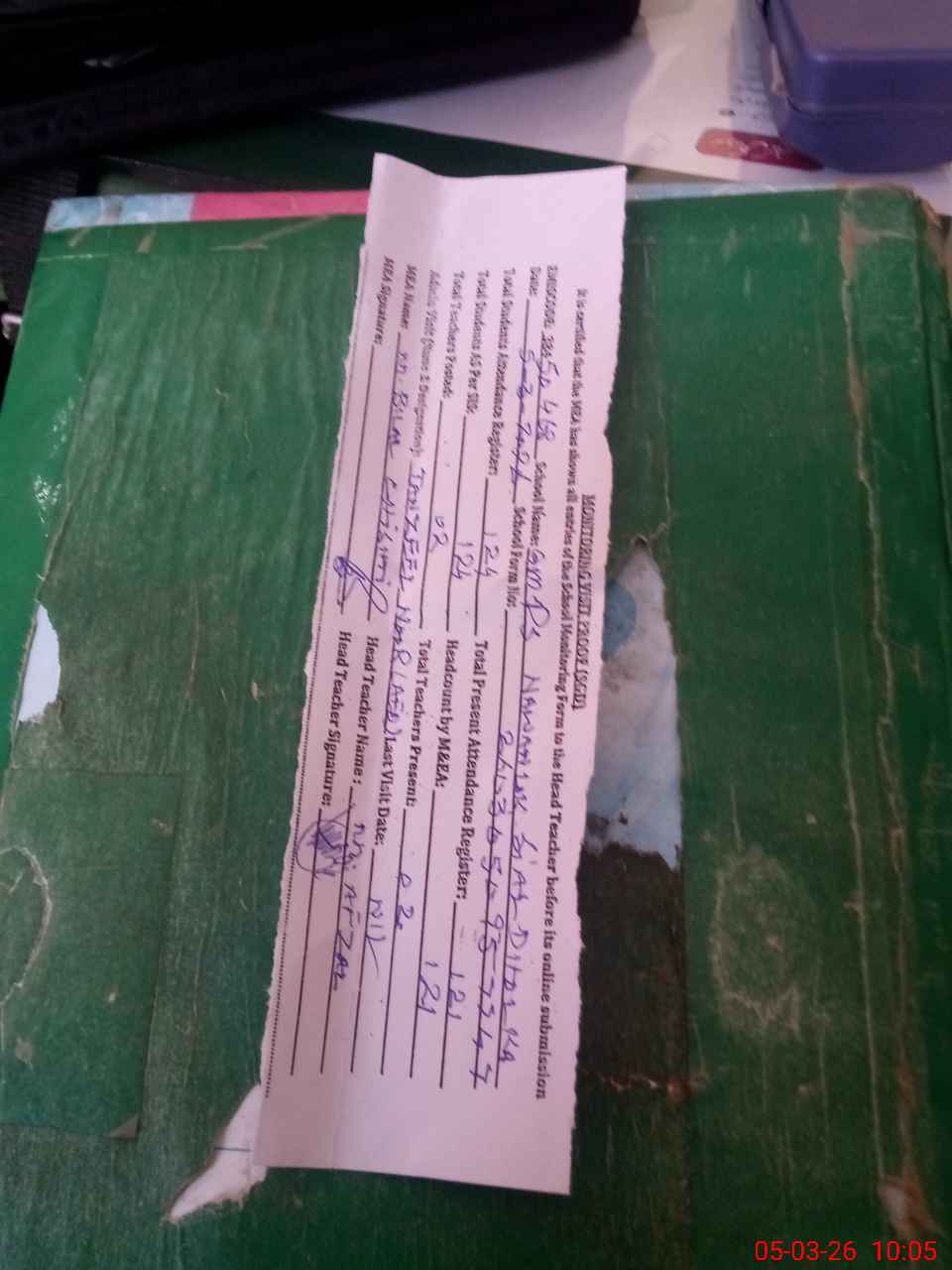 | Attendance Register | Head Teacher | MEA with School | Visit Proof |