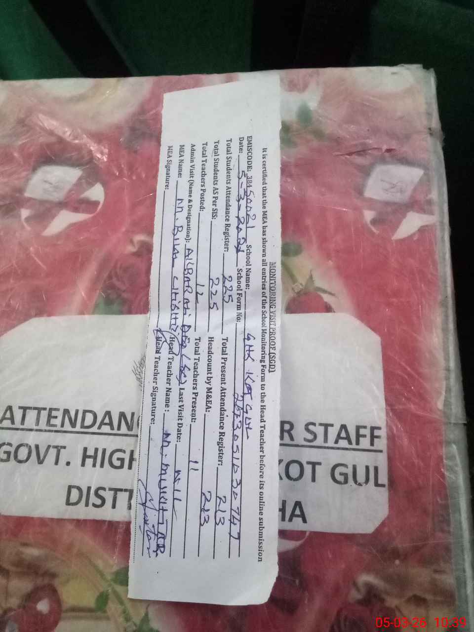 | EMIS Code: 38450021 | Name of School: GHS KOT GUL | |||