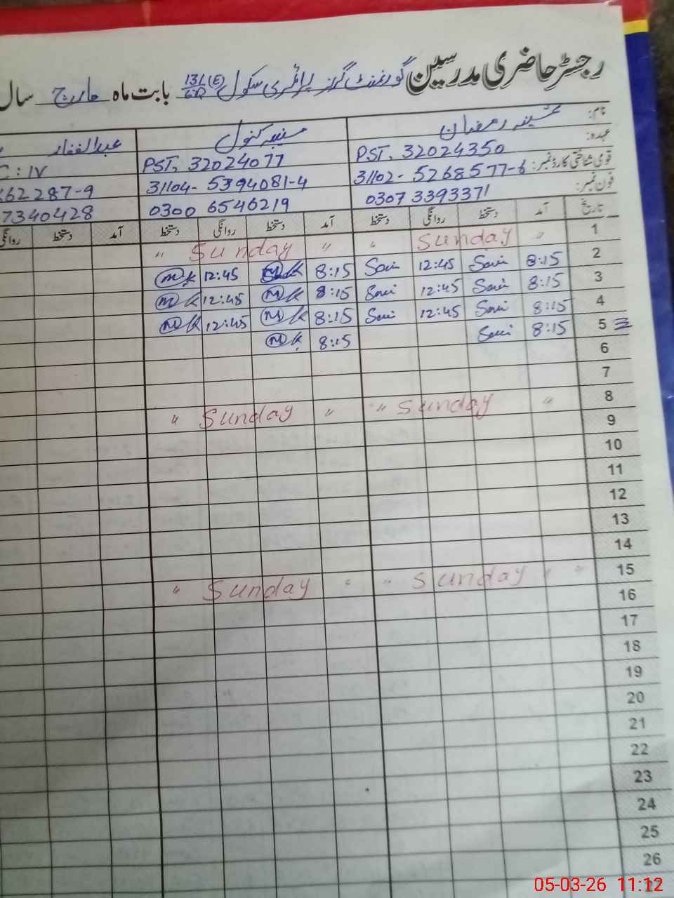 | Name: SA**** RA**** Designation: (School Headmaster's/Headmistress's) Pst Phone/Cell Number: 03**** |