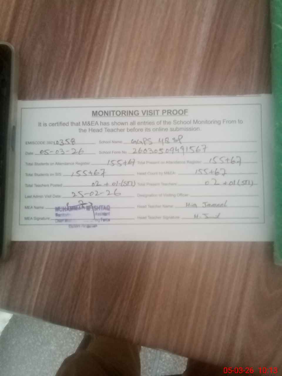 | EMIS Code: 39210358 | Name of School: GGPS 48 SP | |||