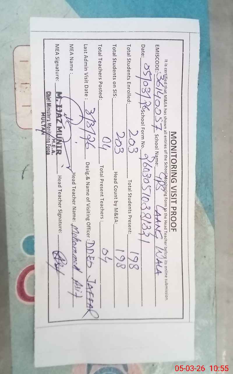| EMIS Code: 36140057 | Name of School: GPS LAANG WALA JALALPUR | |||