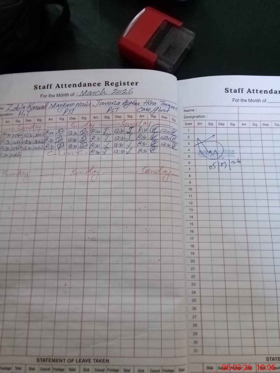 | Leave | Duty | Absent | Maternity | Medical | Ex- Pak |