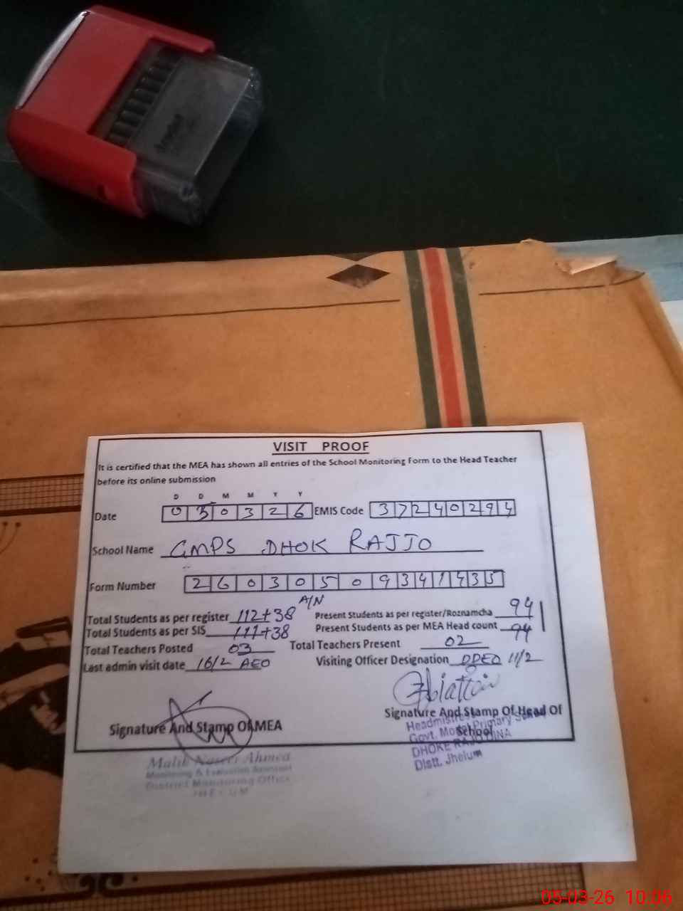| EMIS Code: 37240294 | Name of School: GMPS DHOK RAJJO | |||
