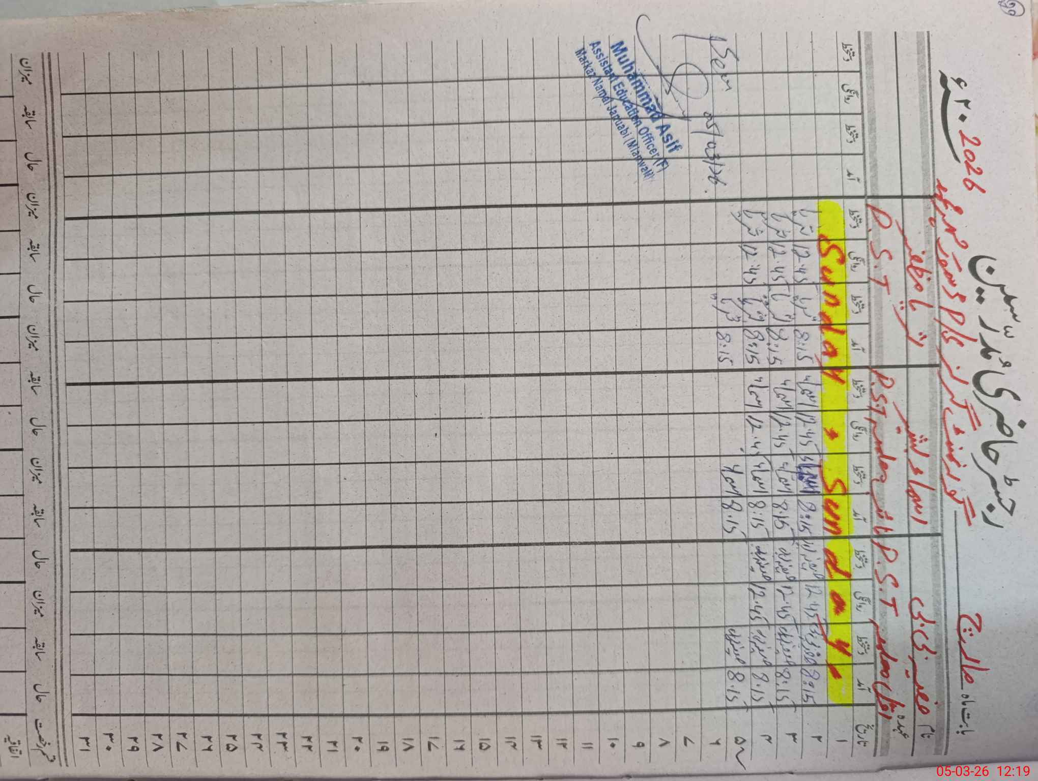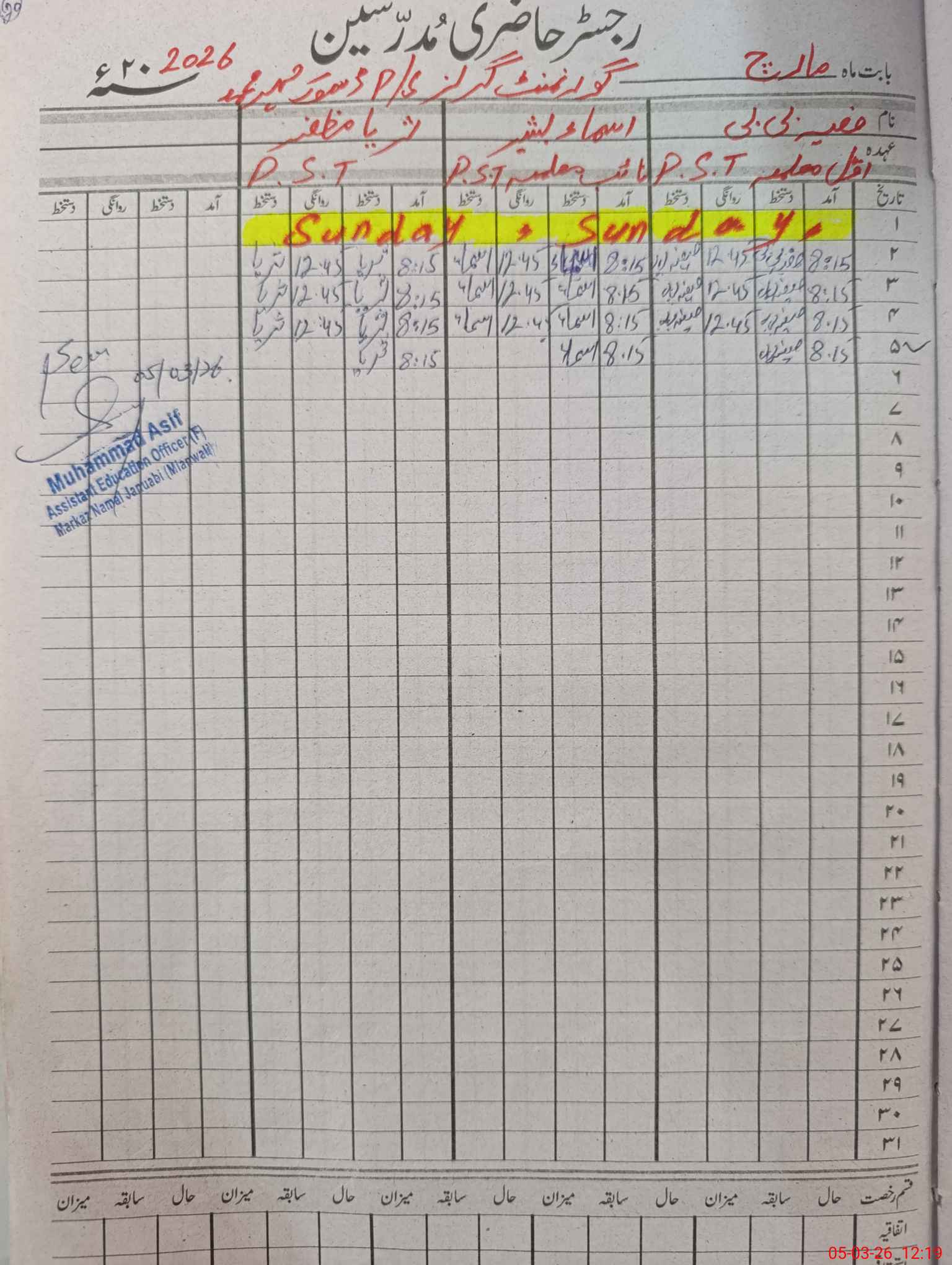 | Name: Sa**** Bi**** Designation: (School Headmaster's/Headmistress's) PST Phone/Cell Number: 03**** |