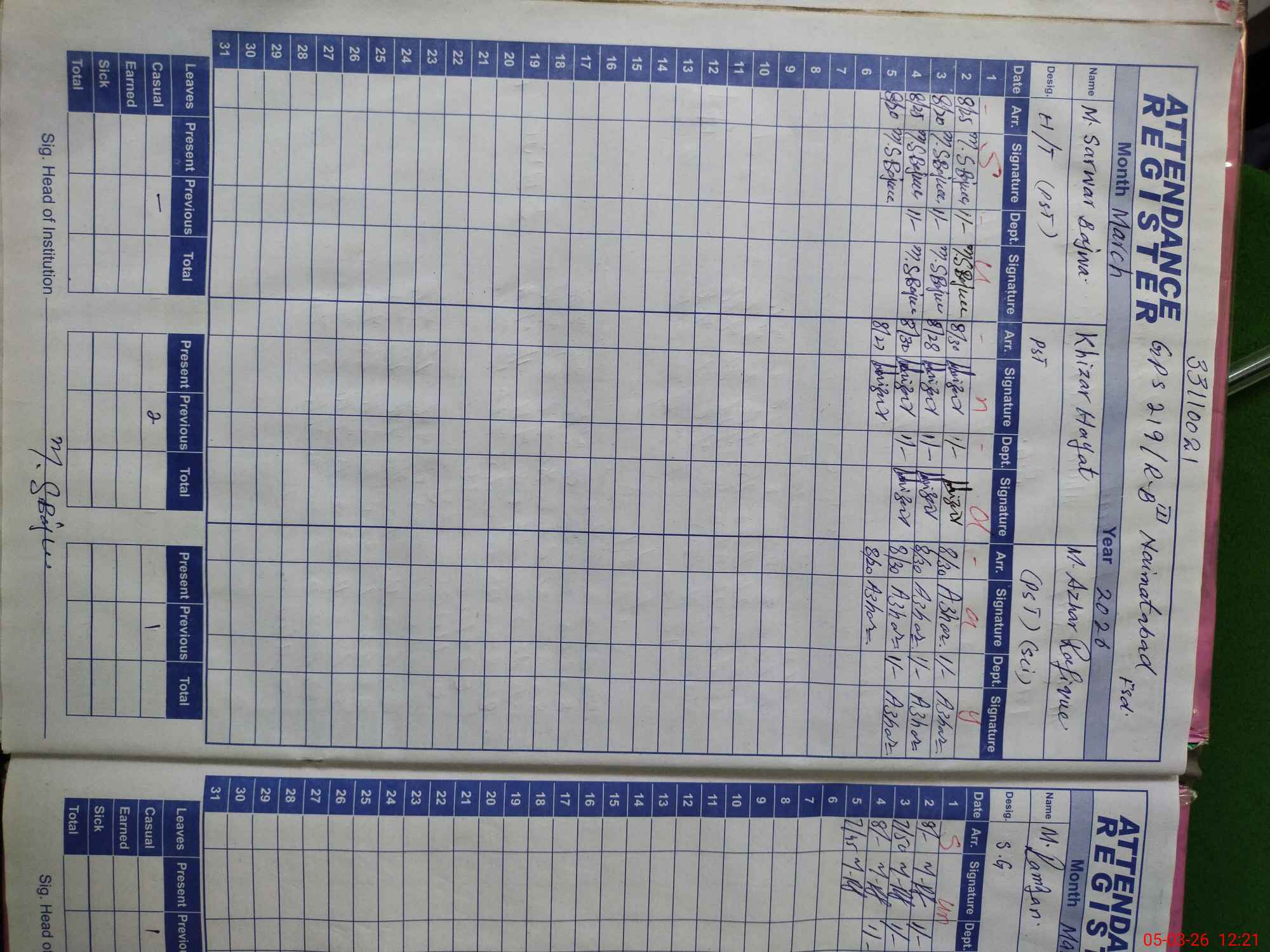 | Name: MU**** SA**** BA**** Designation: (School Headmaster's/Headmistress's) PST Phone/Cell Number: 03**** |