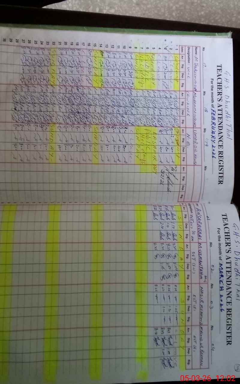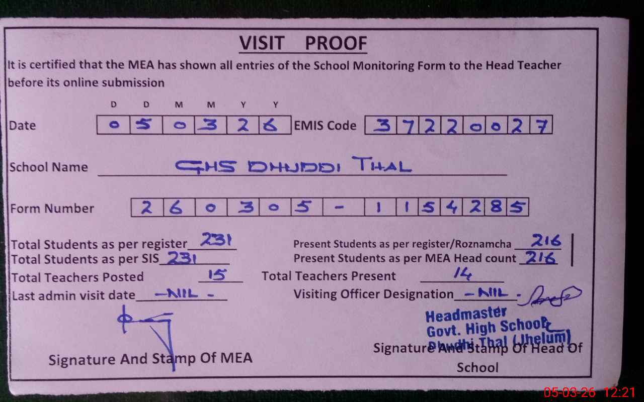 | EMIS Code: 37220027 | Name of School: GHS DHUDI THAL | |||