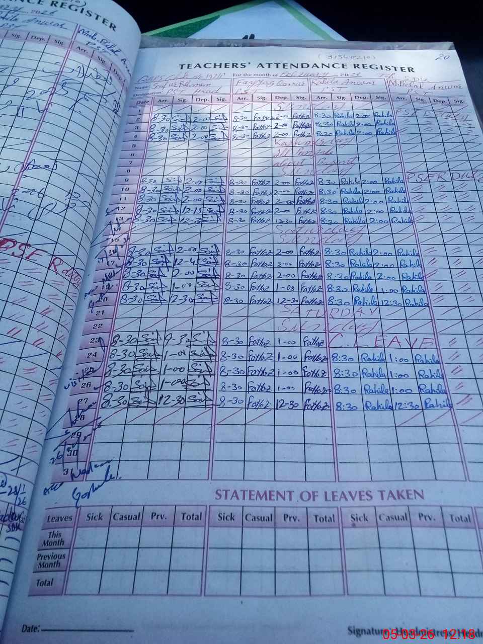 | Leave | Duty | Absent | Maternity | Medical | Ex- Pak |